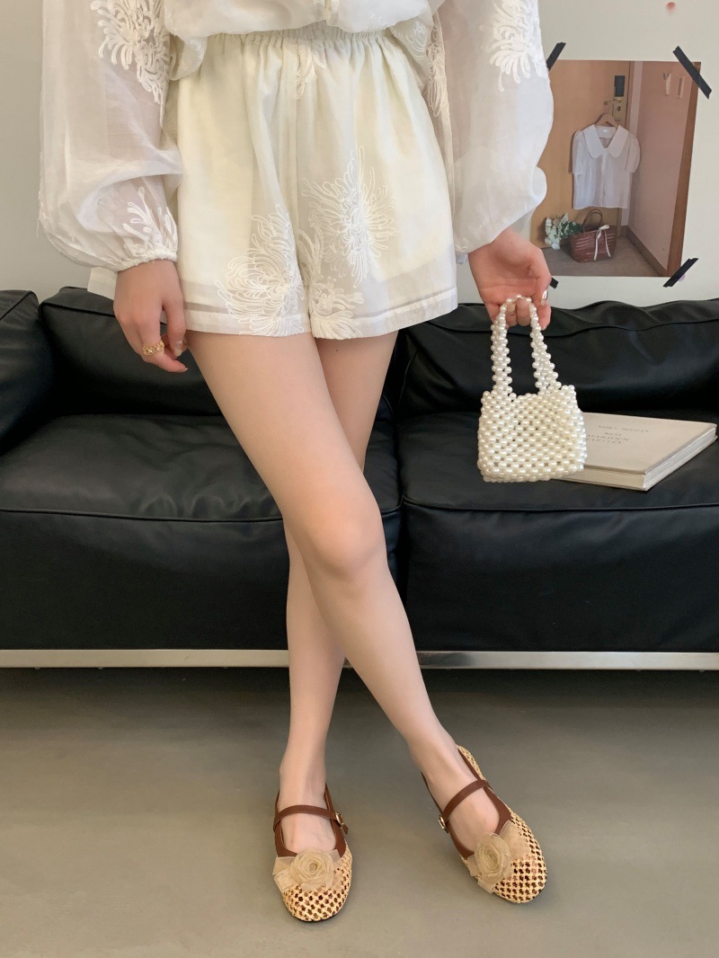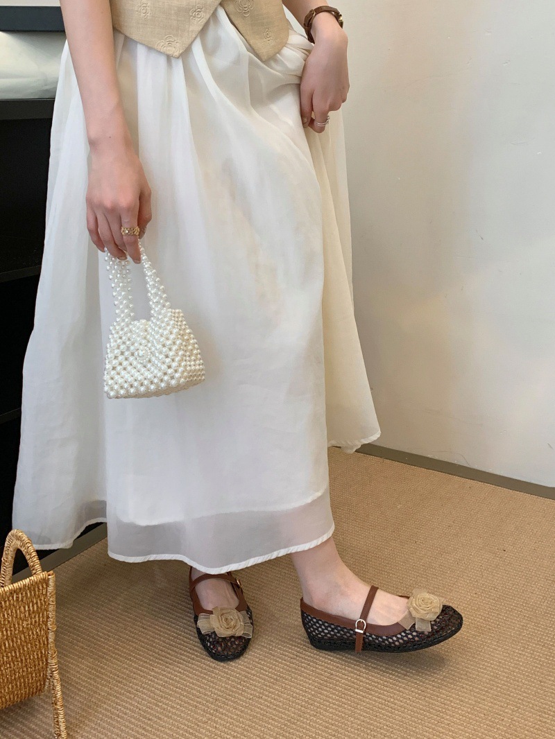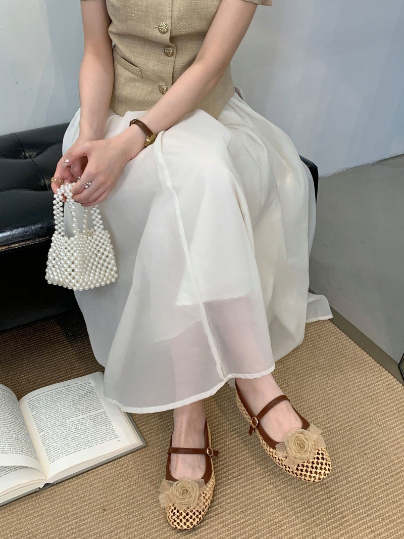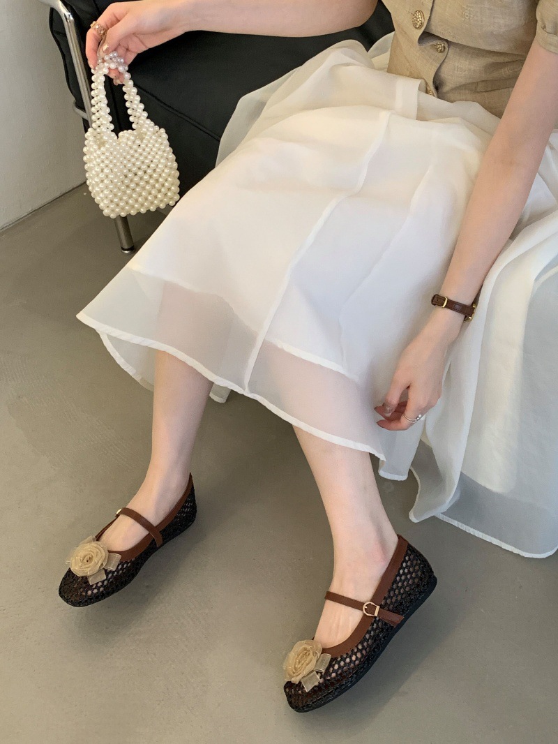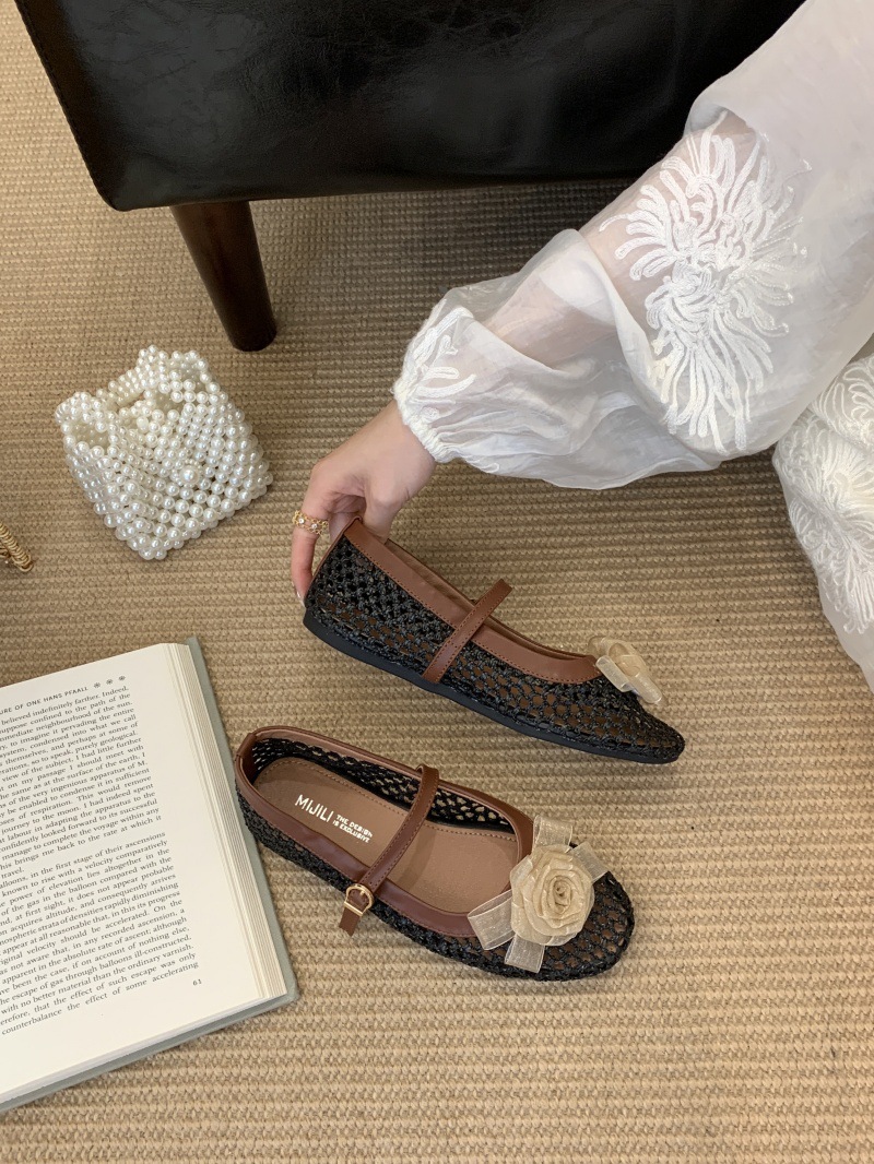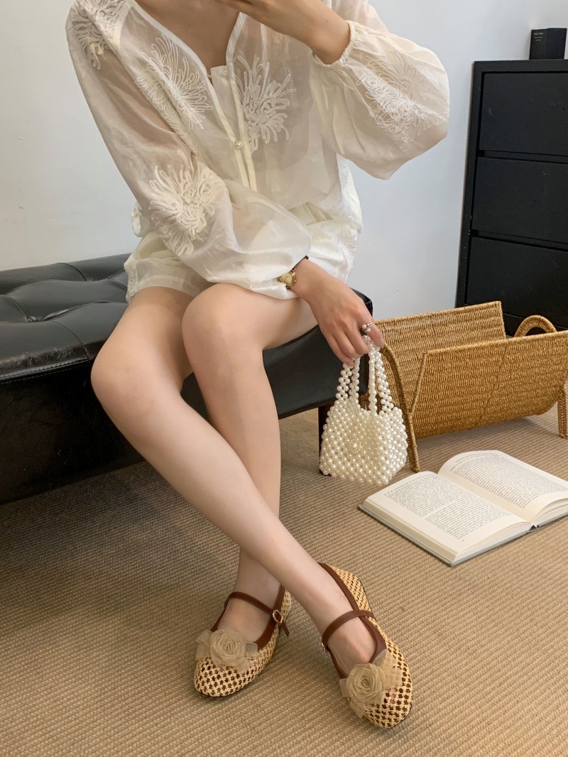 2025년 여름 신상 니치 스타일 여성용 밀짚 소프트솔 슈즈, 원라인 버클 스트랩, 메리제인 슈즈, 플랫슈즈, 다용도스토어 가기