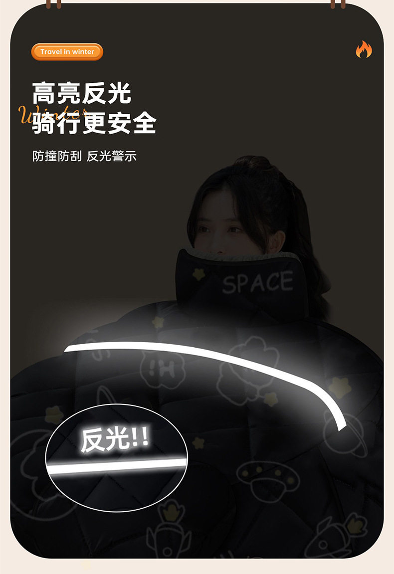 • 검정색 배경의 우주곰—[어깨 및 목 스카프 + 두꺼운 벨벳]—이중 방풍 그립