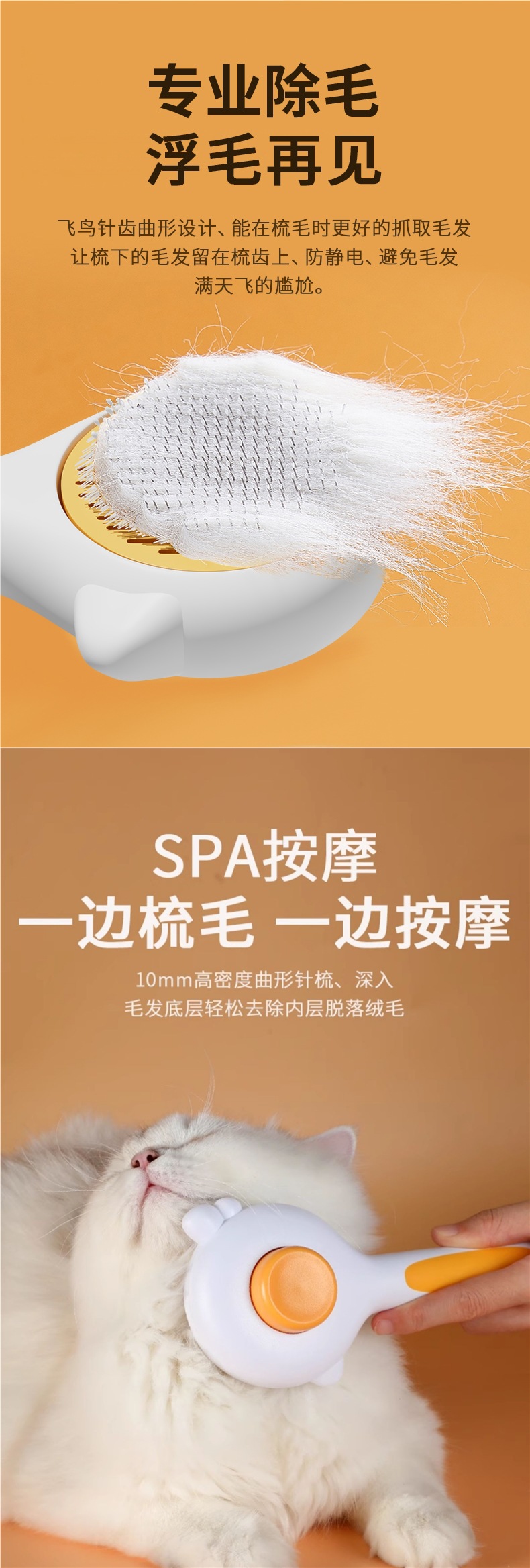 고양이 빗, 애완동물 빗질 브러시, 고양이 털 제거, 긴 털, 래그돌 고양이 및 개 브러시, 청소 용품