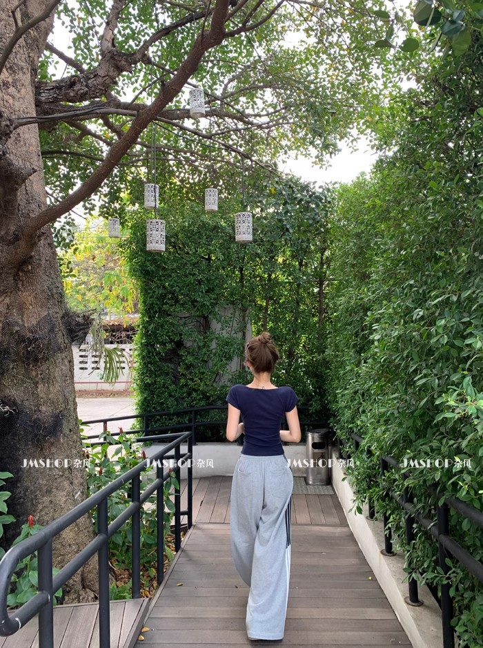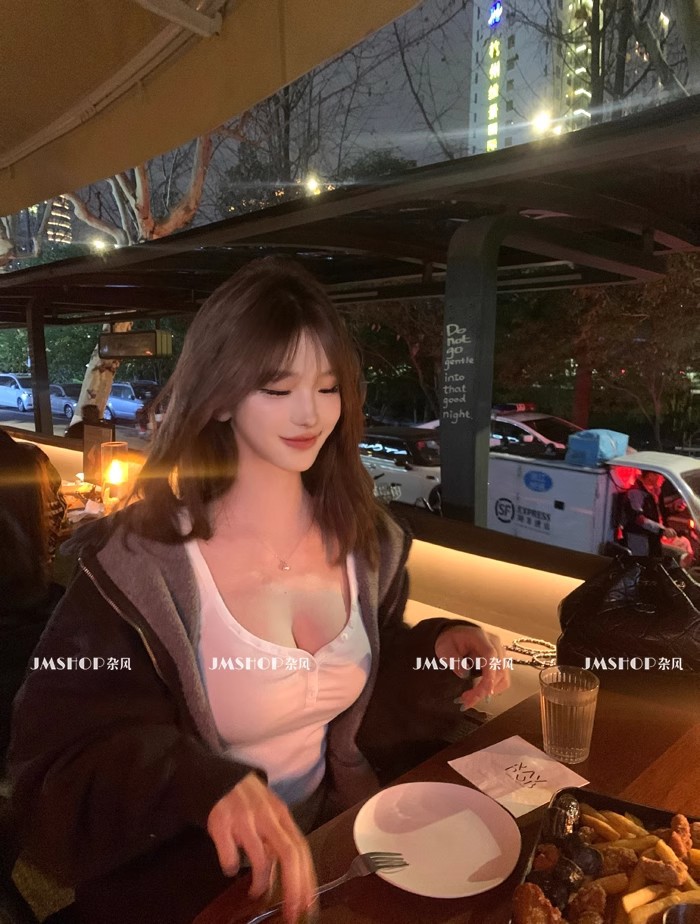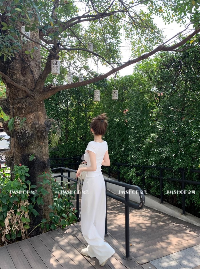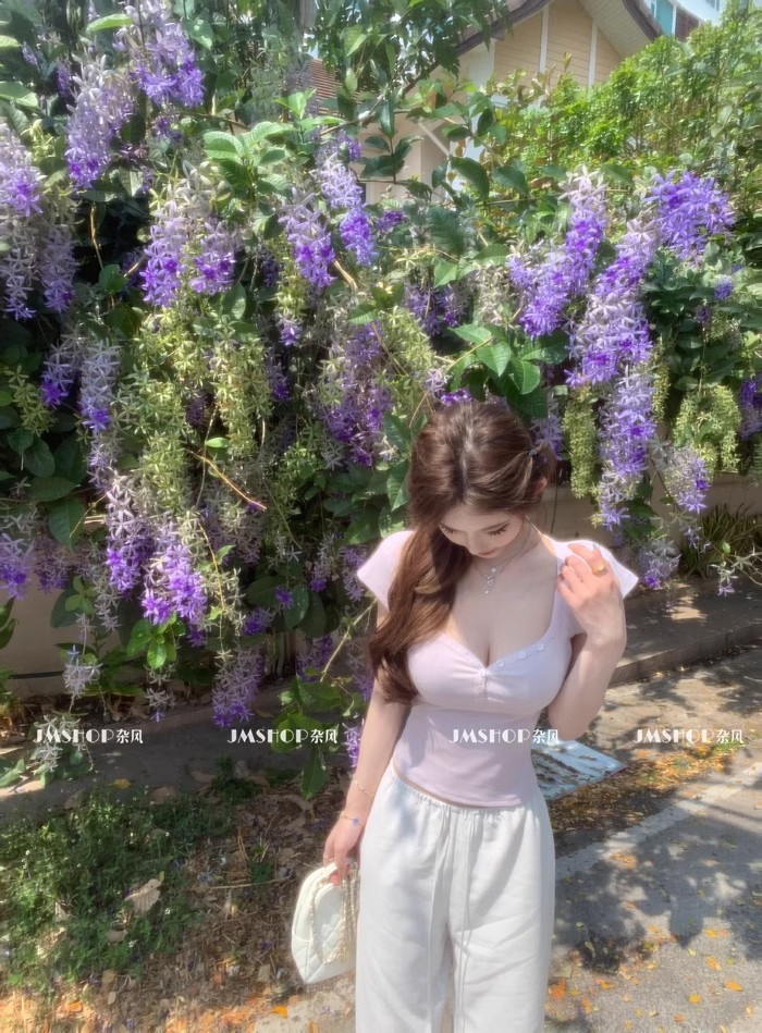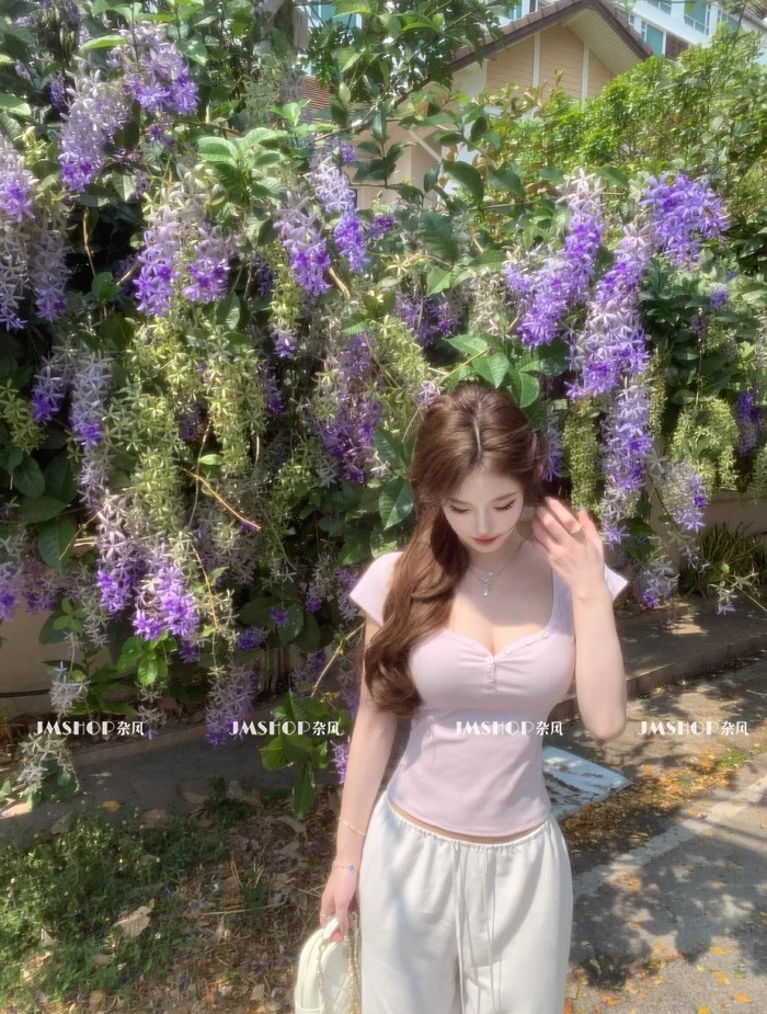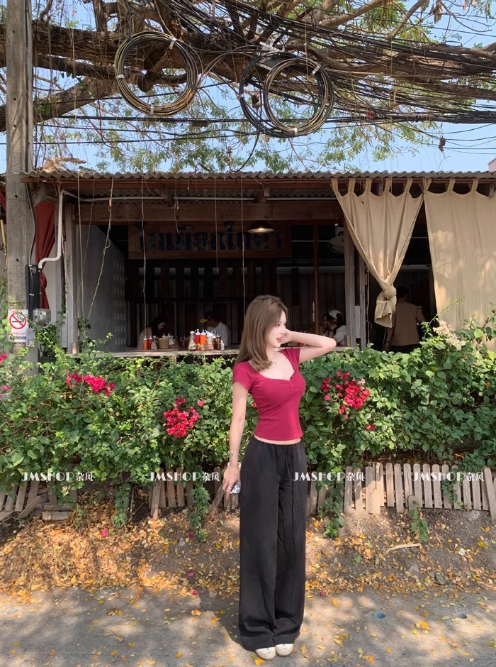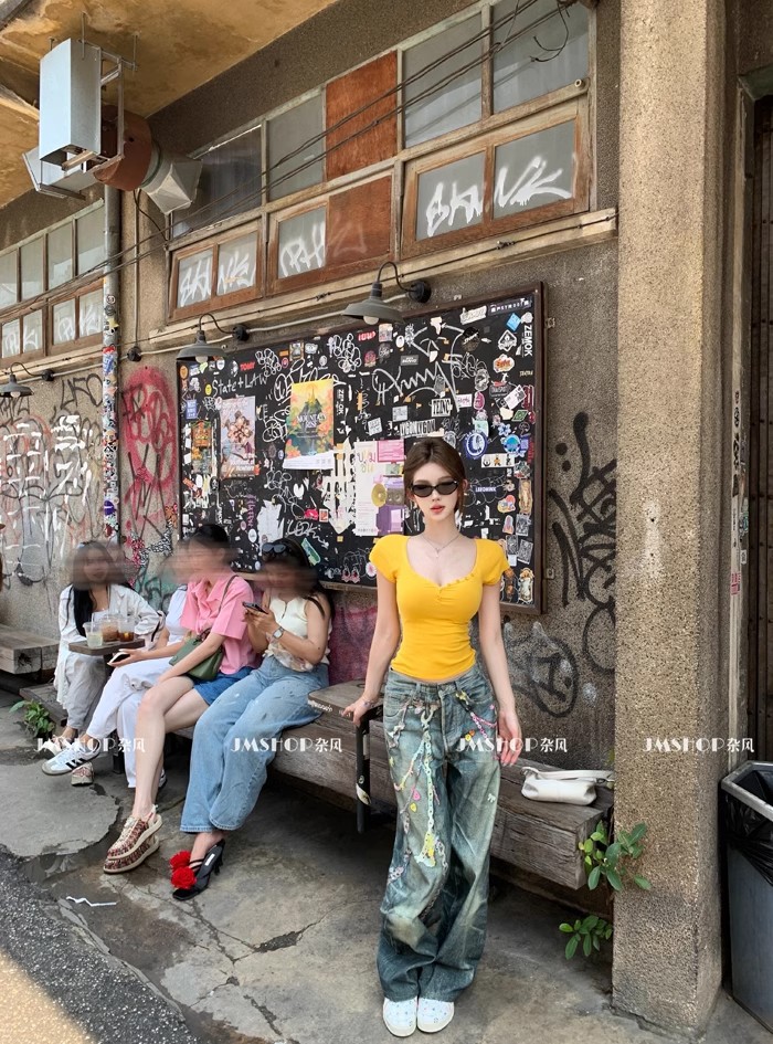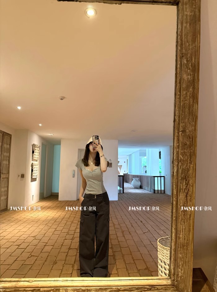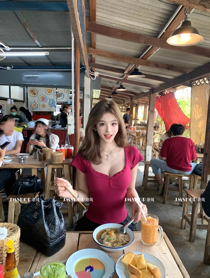 순수한 욕망 스타일 섹시한 뜨거운 소녀 로우 넥 V 넥 아름답고 독특하고 아름답고 세련된 여성용 여름 슬림 반팔 티셔츠스토어 가기