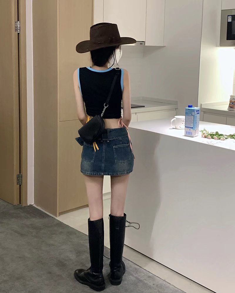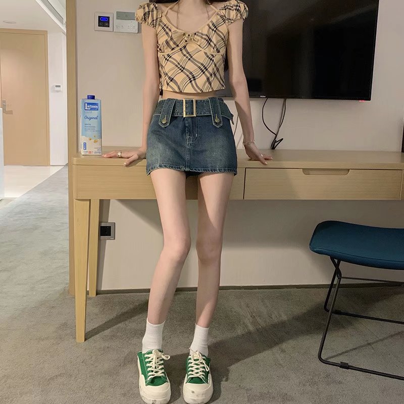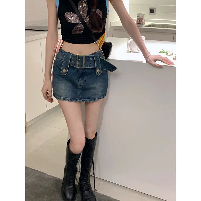 여름 여성용 달콤하고 시원한 복고풍 하이웨이스트 데님 스커트, 인터넷 연예인 힙 커버 얇은 스커트, 키 작은 사람들을 위한 슬리밍 A라인 스커트스토어 가기