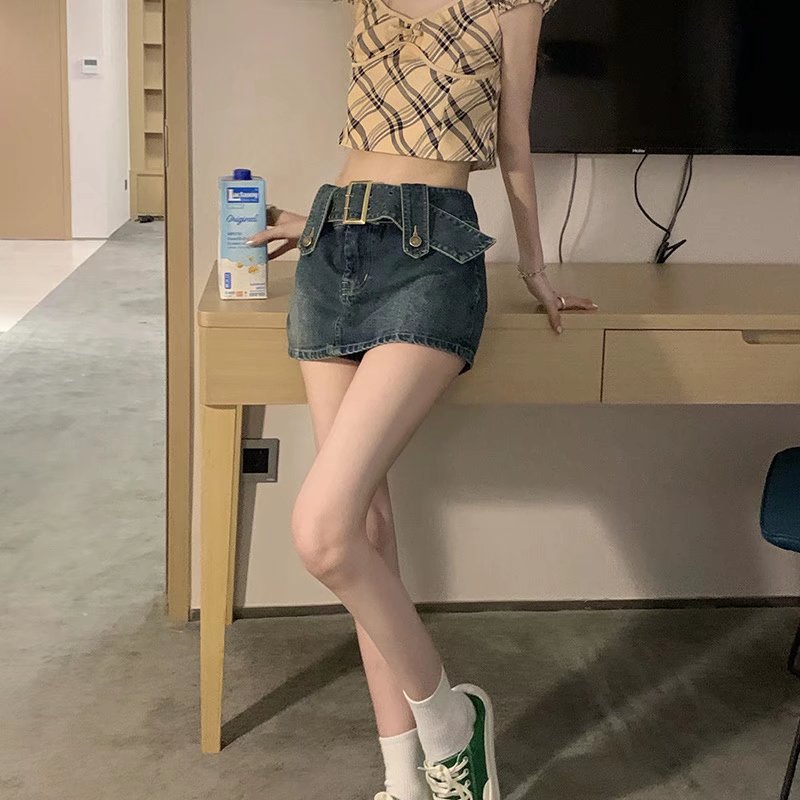 여름 여성용 달콤하고 시원한 복고풍 하이웨이스트 데님 스커트, 인터넷 연예인 힙 커버 얇은 스커트, 키 작은 사람들을 위한 슬리밍 A라인 스커트
