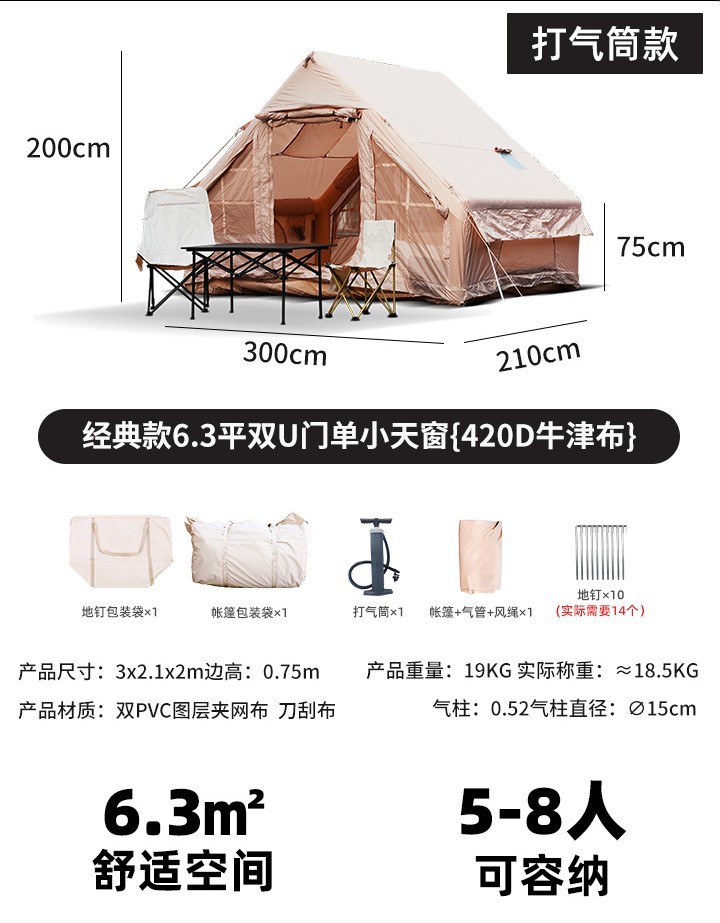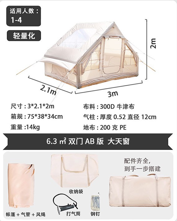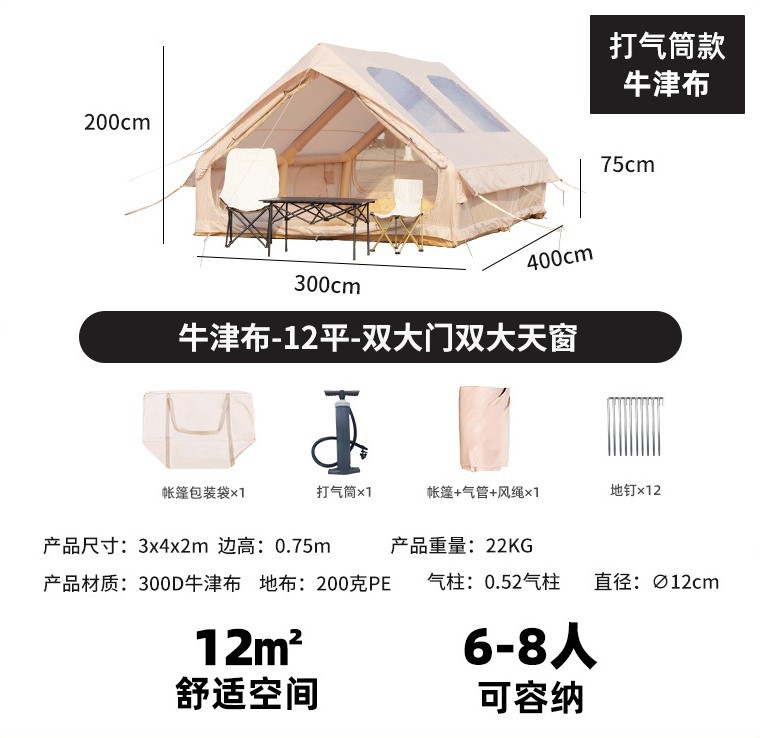 완전 자동 팽창식 텐트, 야외용 초대형 캠핑 텐트, 휴대용 방수 및 두꺼운 하우스형 캠핑 텐트