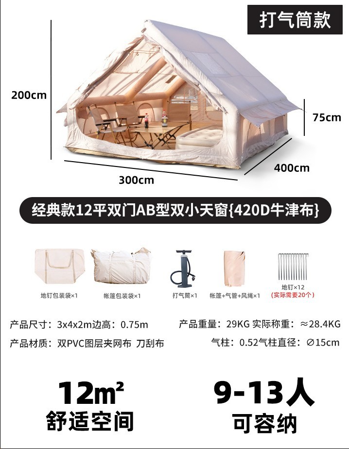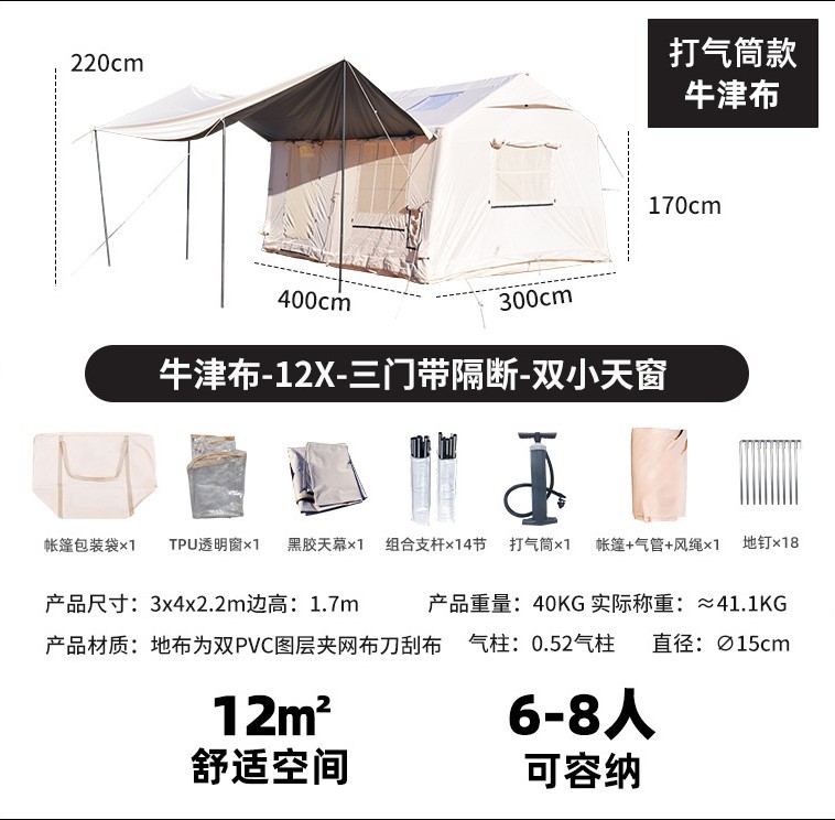 완전 자동 팽창식 텐트, 야외용 초대형 캠핑 텐트, 휴대용 방수 및 두꺼운 하우스형 캠핑 텐트스토어 가기