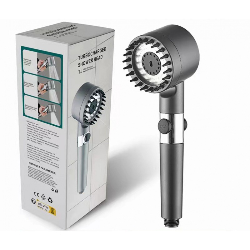 • 업그레이드된 3.0 스탠다드 모델 [과부하로 인한 피부 손상 없음] 건그레이 마사지 필터 샤워헤드(마사지 실리콘 브러시 포함)