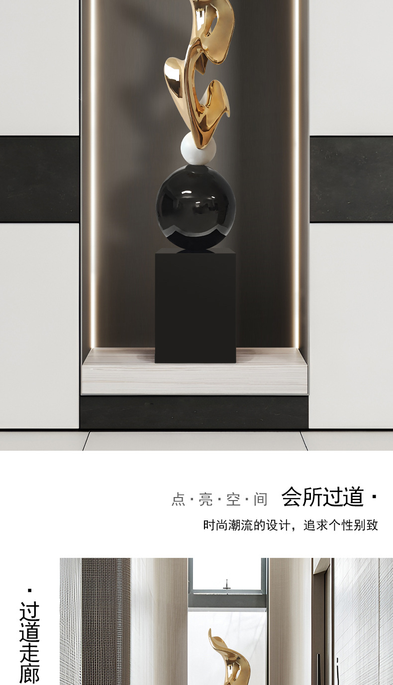 현대적인 가벼운 럭셔리 스타일 거실 입구 기하학적 바닥 예술 추상 조각 빌라 복도 통로 장식 장식품스토어 가기