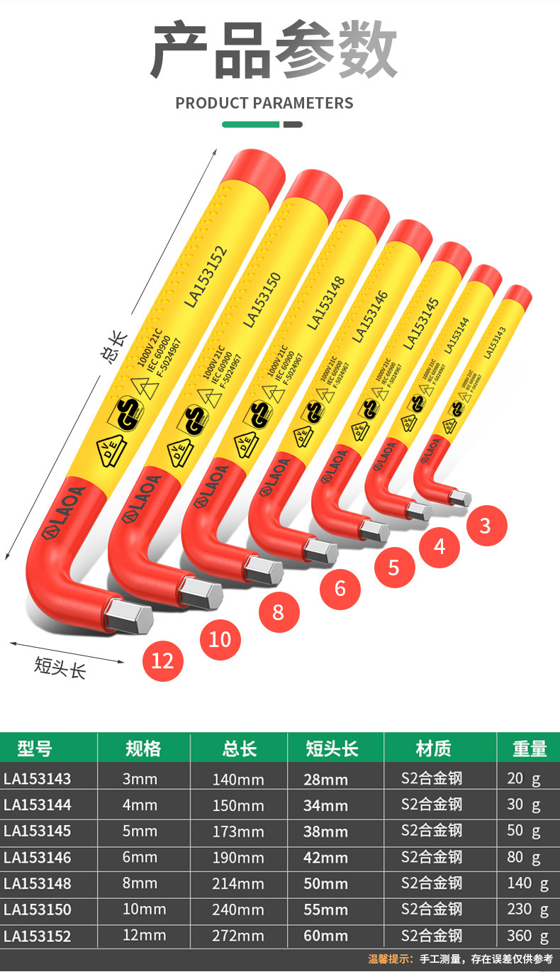 Old A LAOA 고전압 절연 육각 렌치 VDE 인증 1000V 육각 드라이버 육각 렌치
