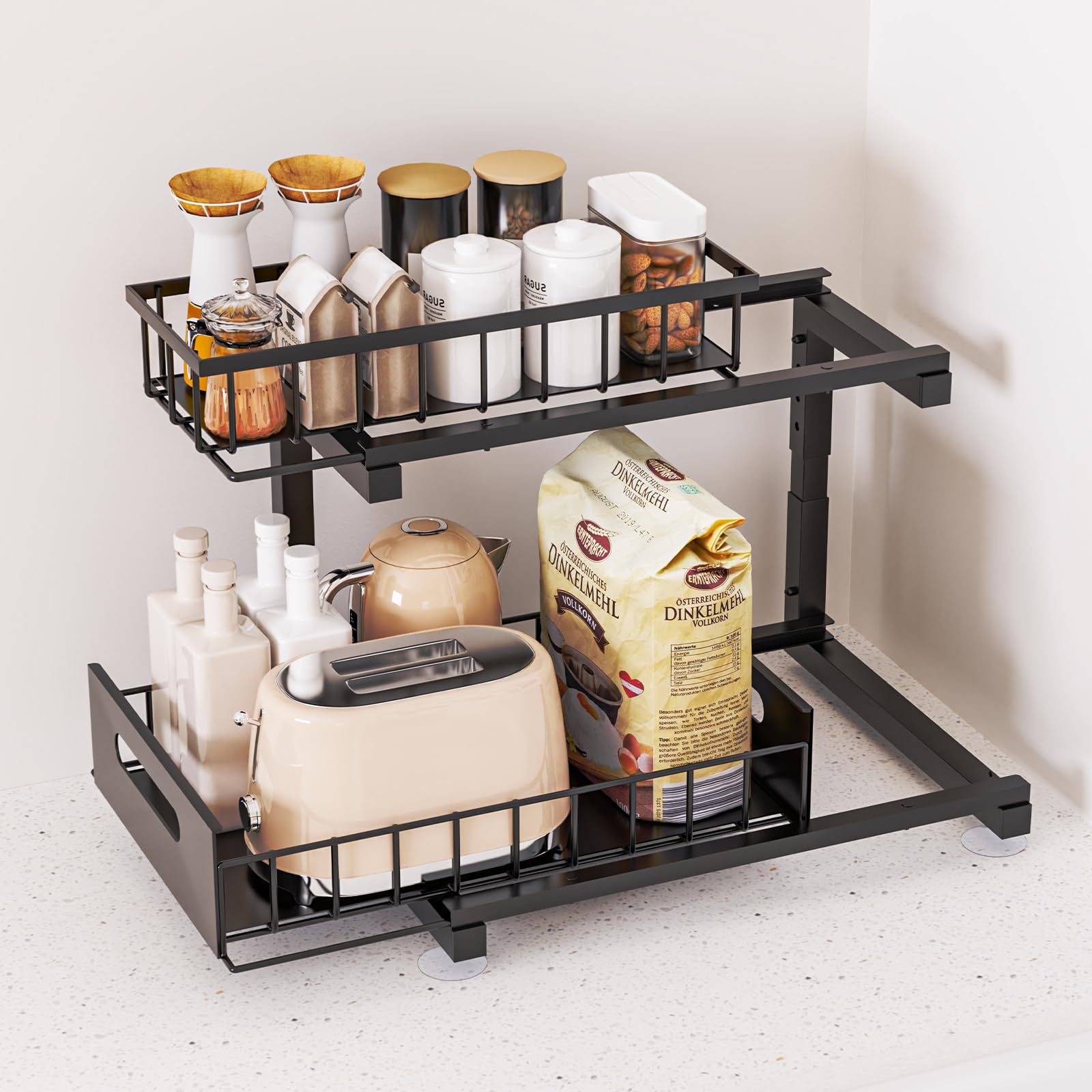 싱크대 아래 주방 수납선반, 캐비닛 내부 다층 수납선반, 공간절약형 조리대 다기능 풀아웃 양념선반스토어 가기