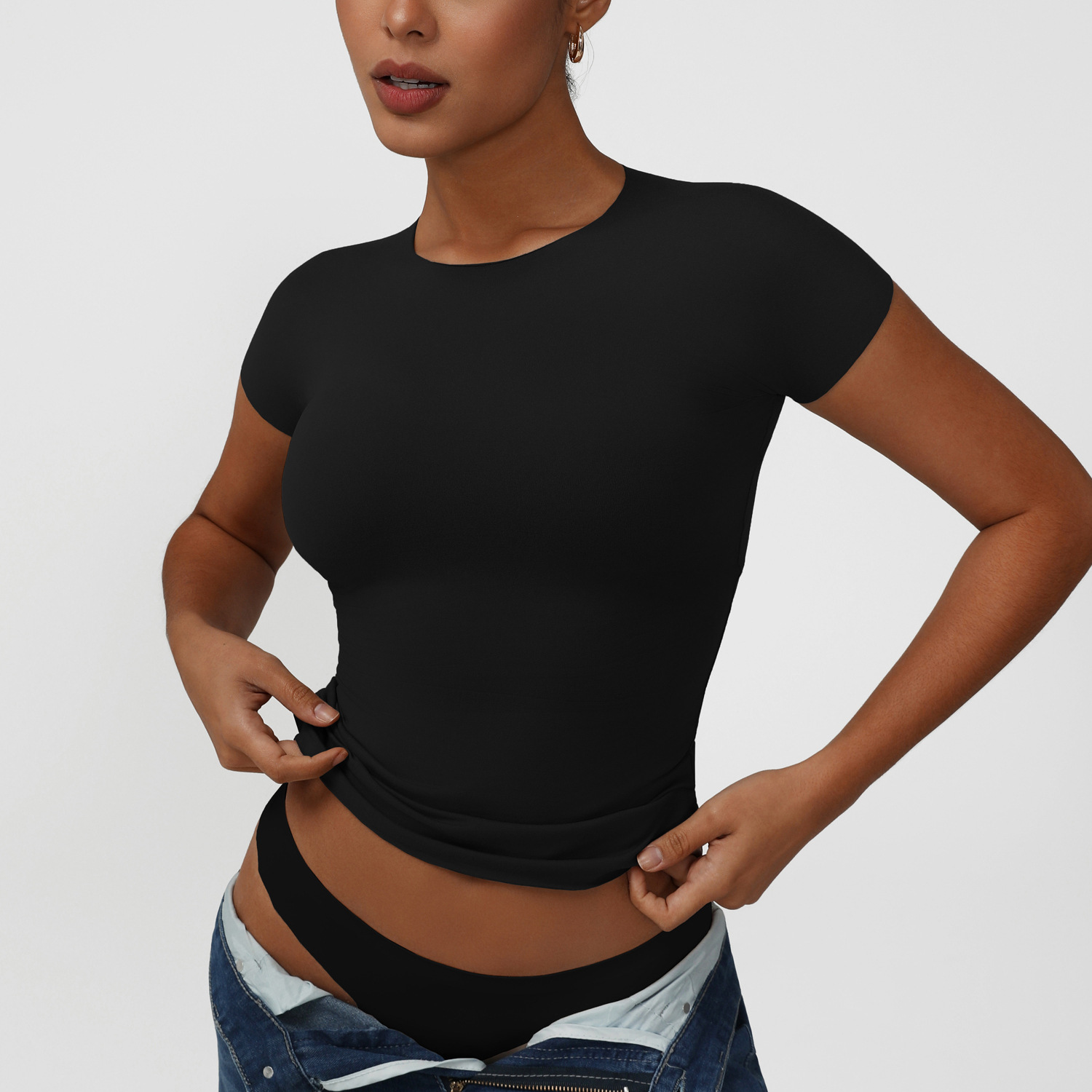 스킴스 반팔 티셔츠 고탄력 누드느낌 요가 피트니스 스포츠 티셔츠 캐주얼 타이트핏 티셔츠 여성용 구름같은 부드러운 원단