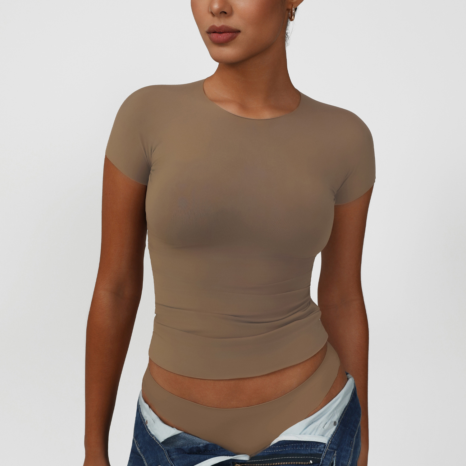 스킴스 반팔 티셔츠 고탄력 누드느낌 요가 피트니스 스포츠 티셔츠 캐주얼 타이트핏 티셔츠 여성용 구름같은 부드러운 원단스토어 가기