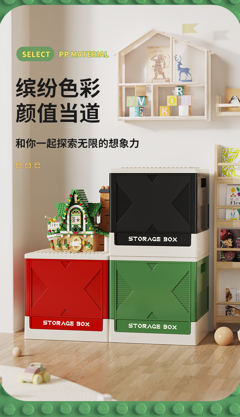 장난감 보관 상자 다기능 가정용 어린이 조립 빌딩 블록 스낵 접이식 보관 상자는 보관 상자와 함께 쌓을 수 있습니다.스토어 가기