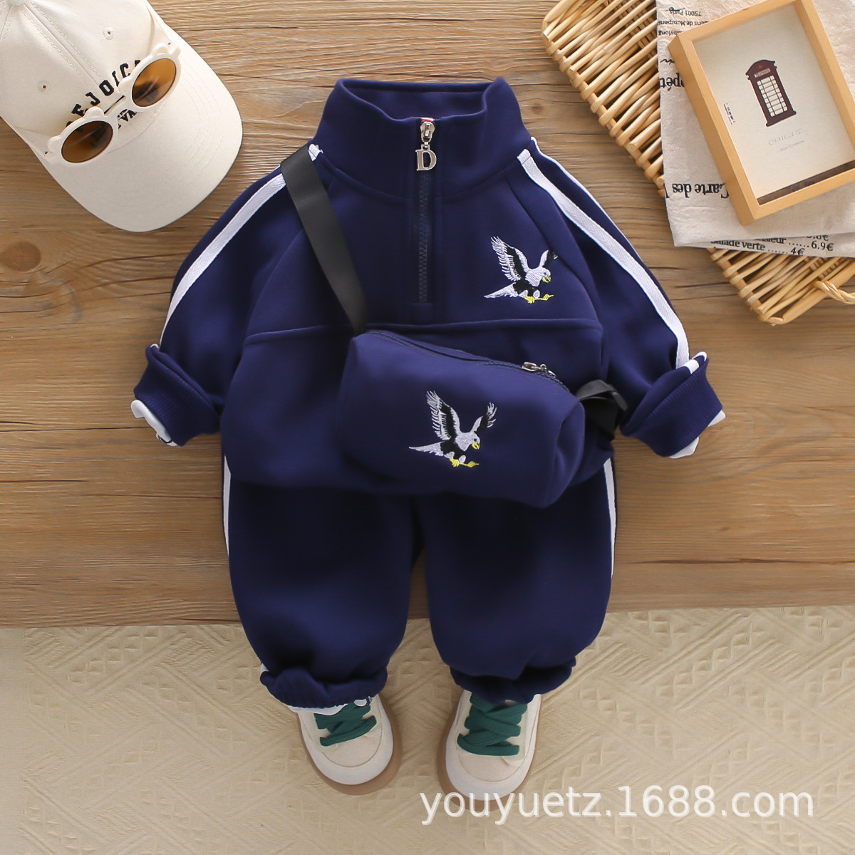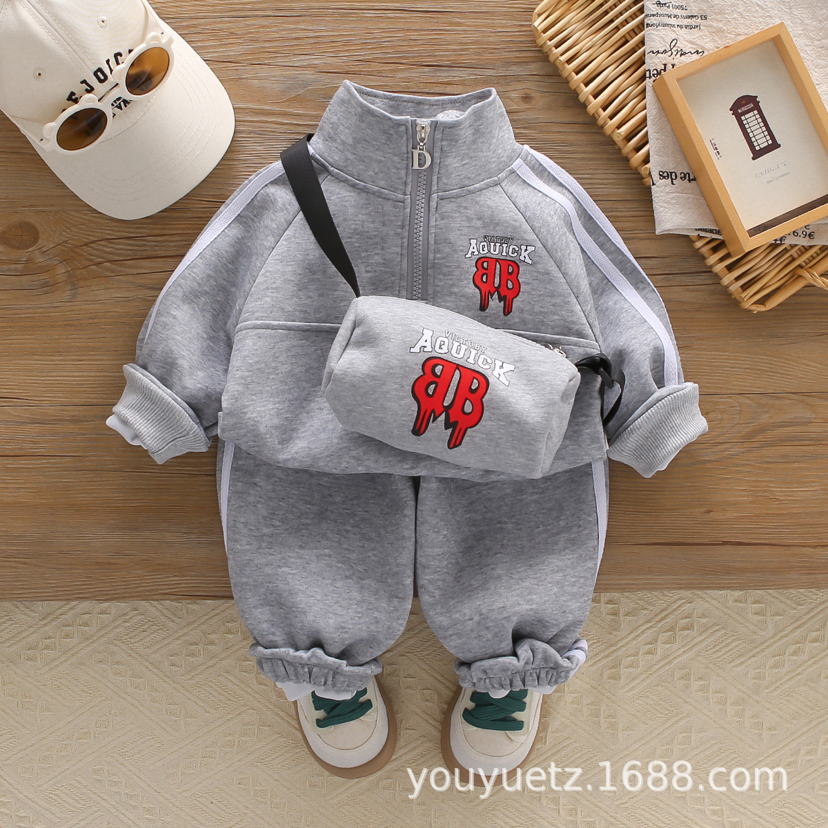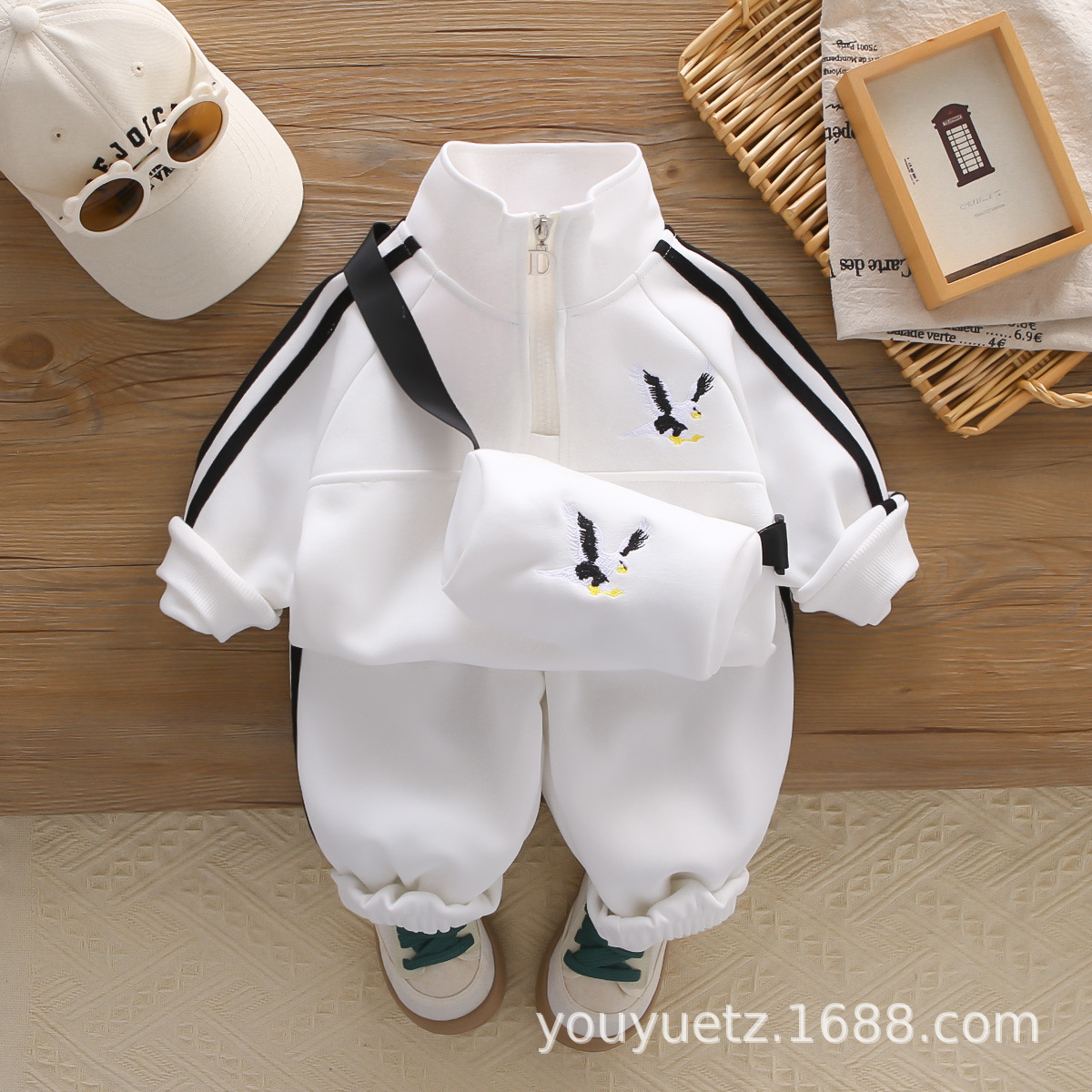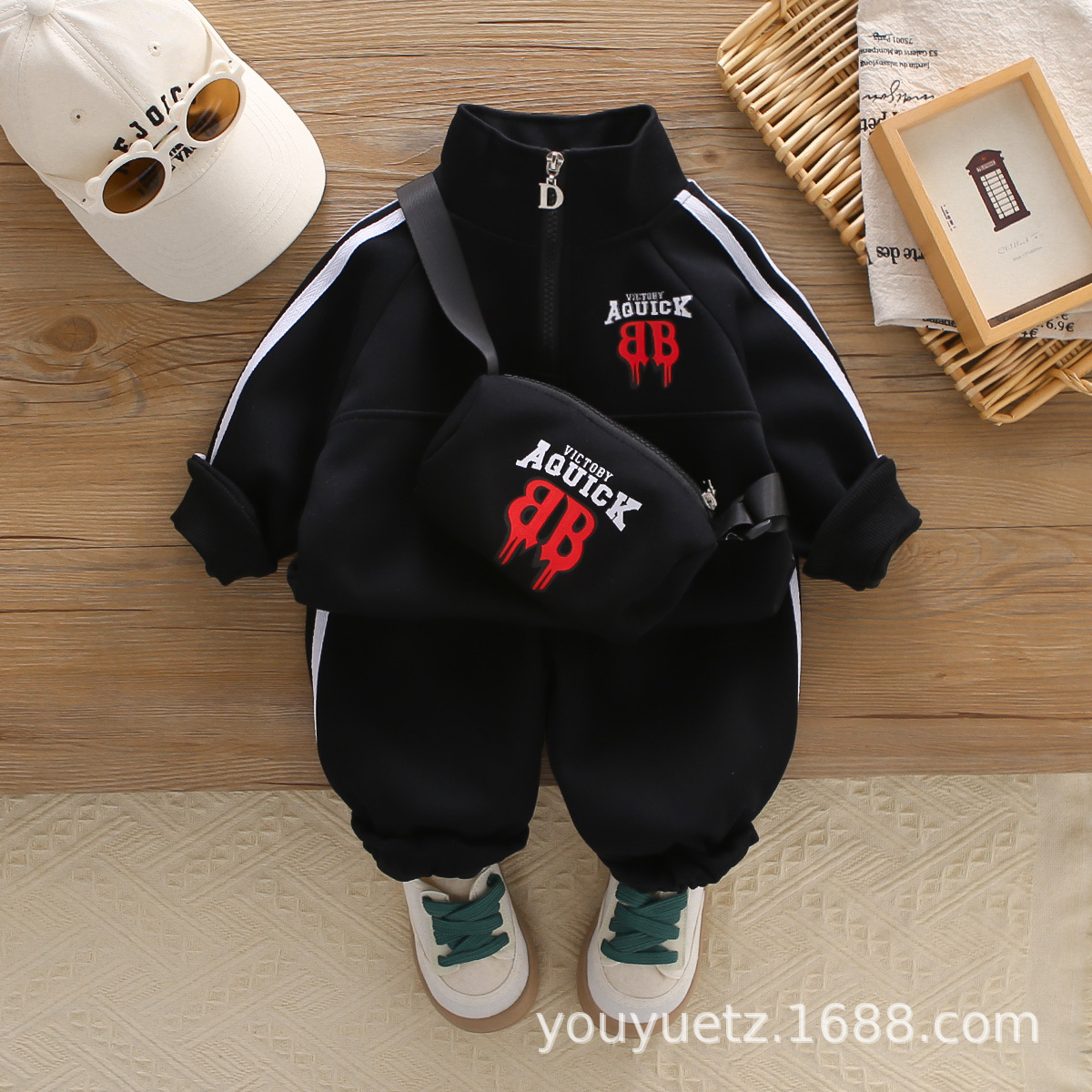 아기 봄 가을 의류 세트, 남아용 세련된 자수 가방 자켓, 아동용 가을 신상 캐주얼 스포츠 3종 세트스토어 가기