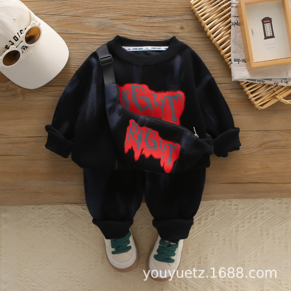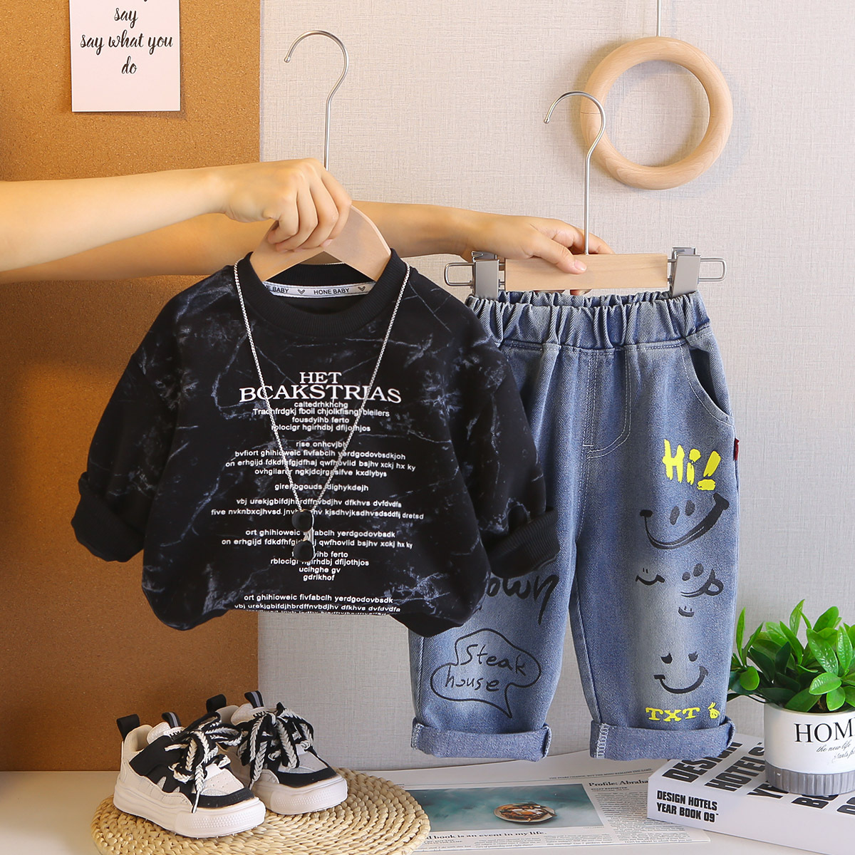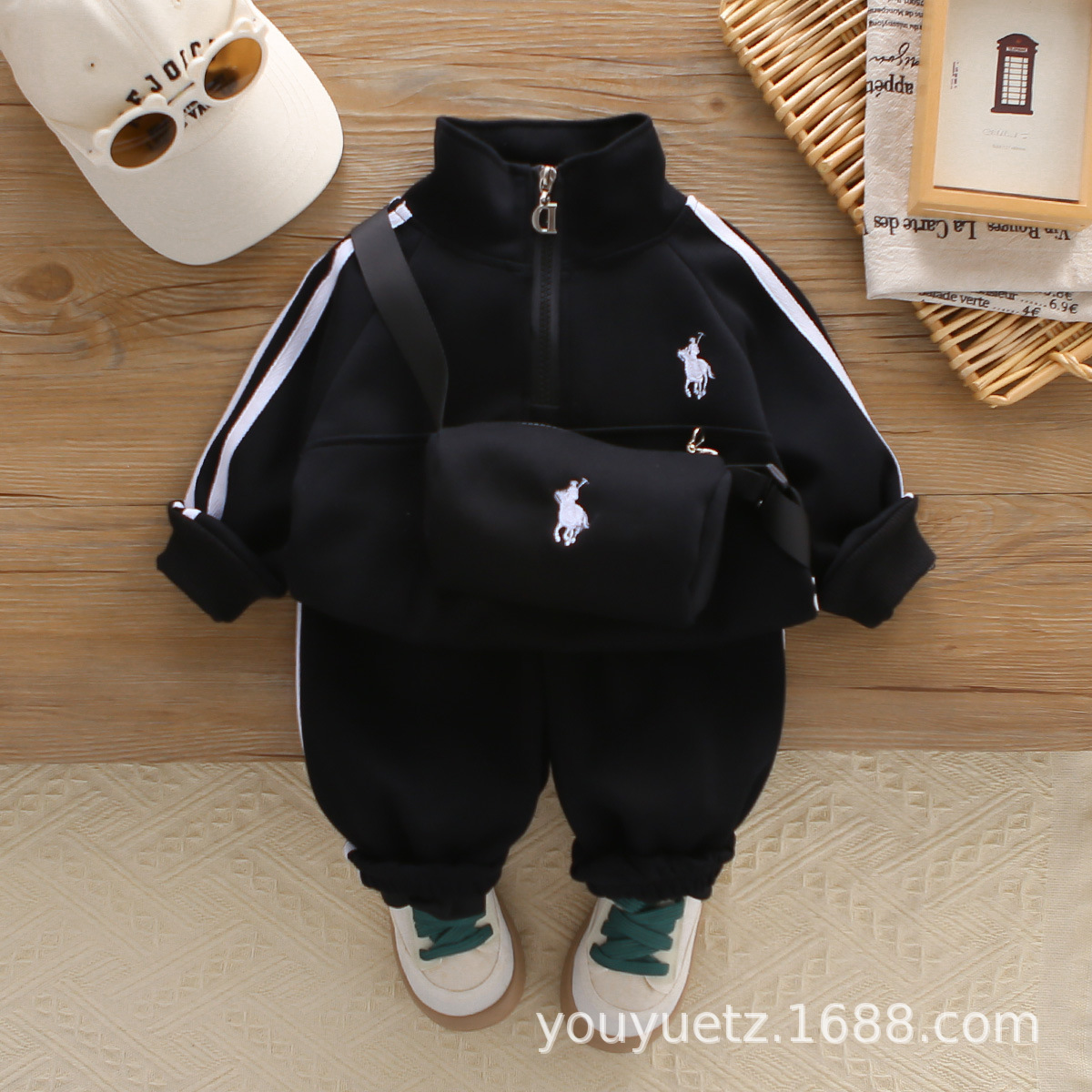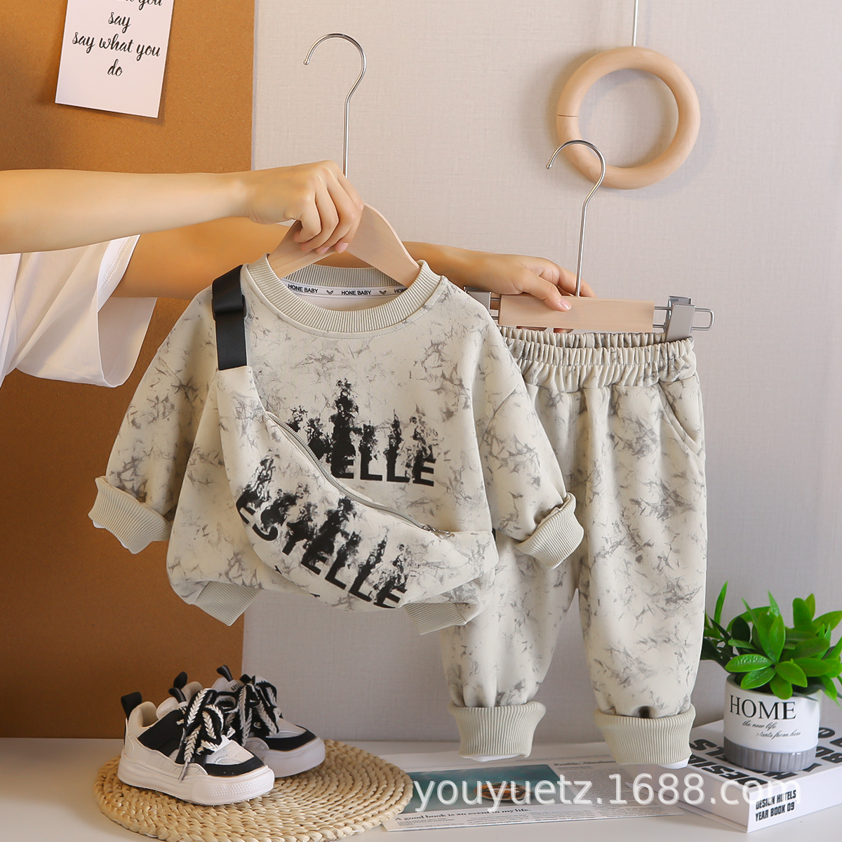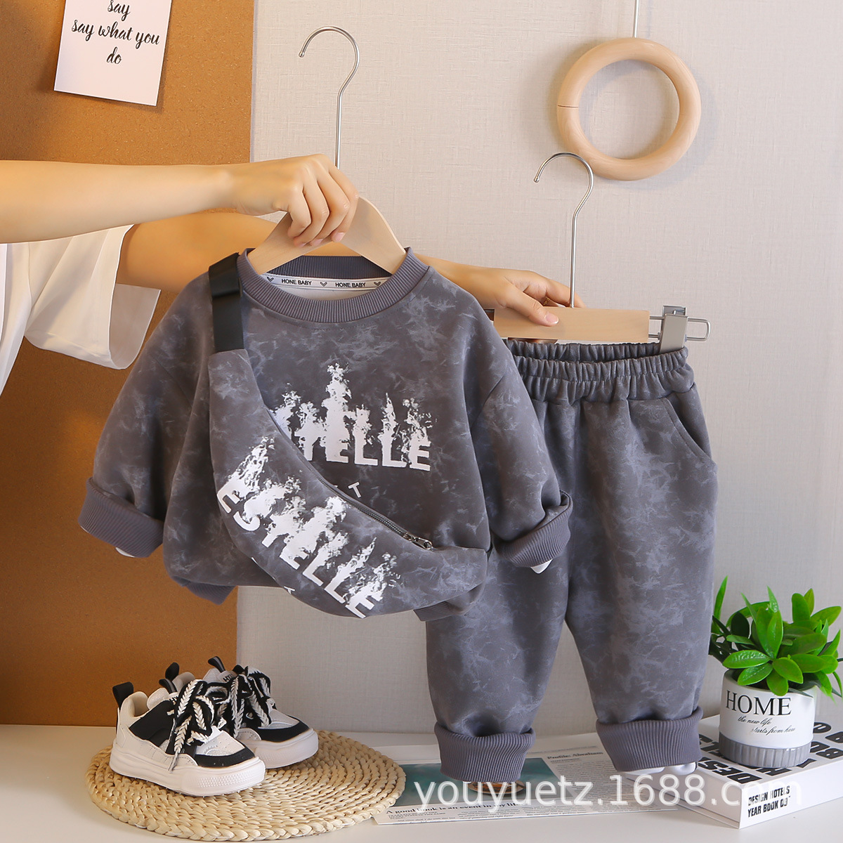 아기 봄 가을 의류 세트, 남아용 세련된 자수 가방 자켓, 아동용 가을 신상 캐주얼 스포츠 3종 세트스토어 가기