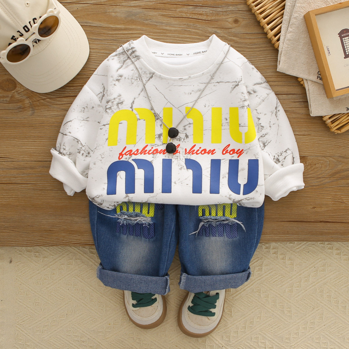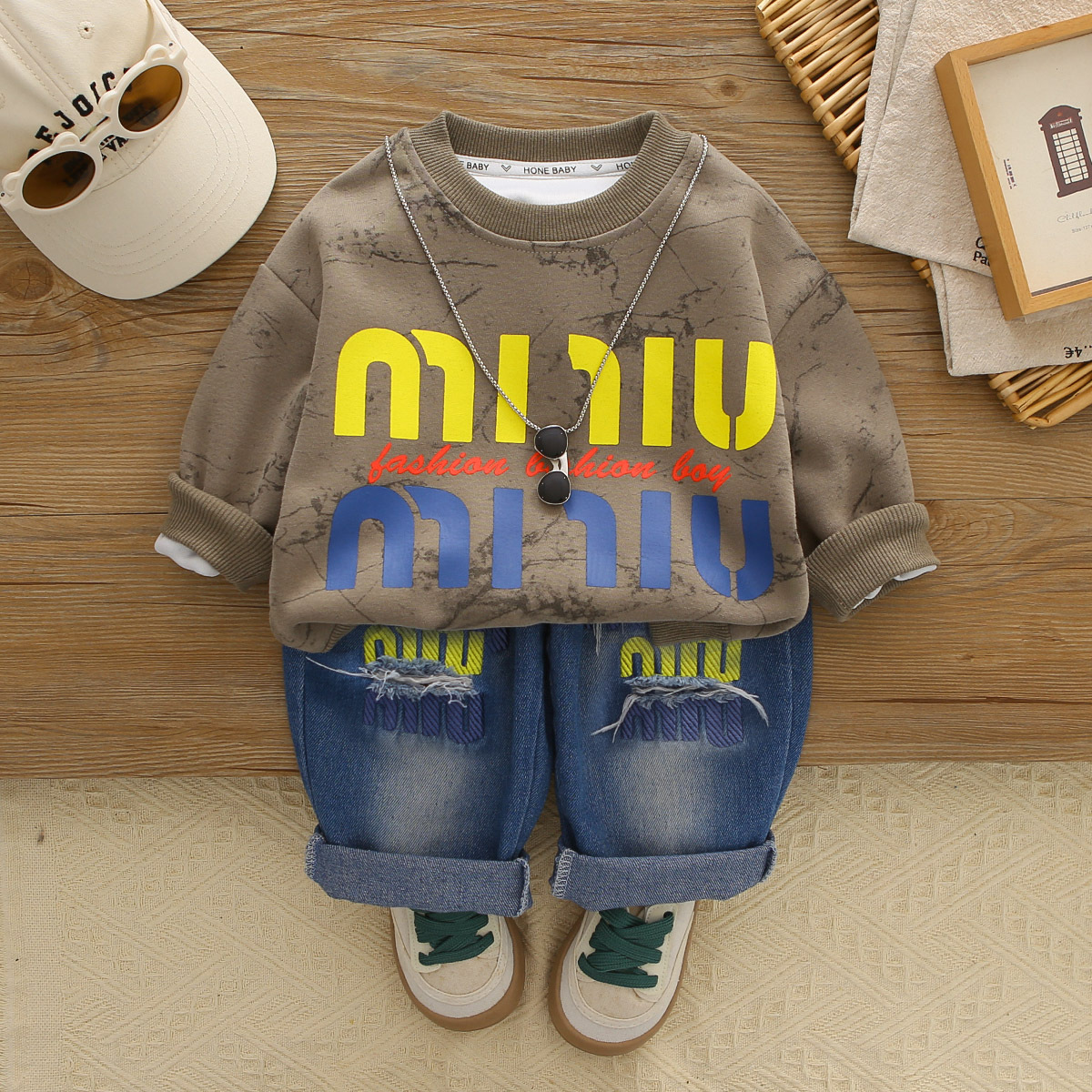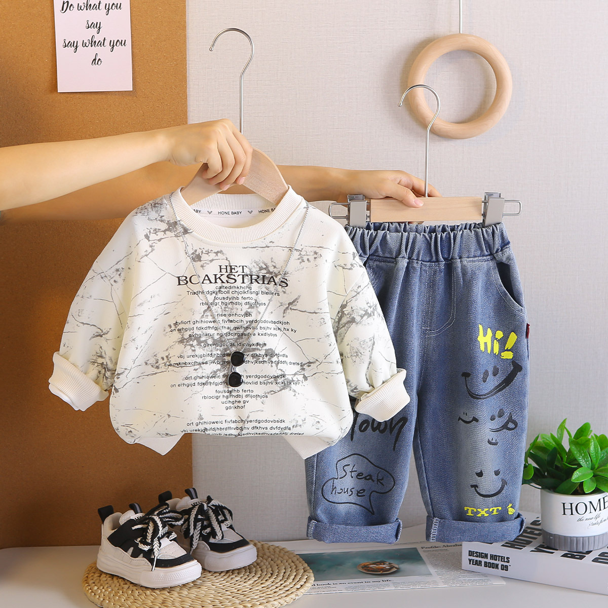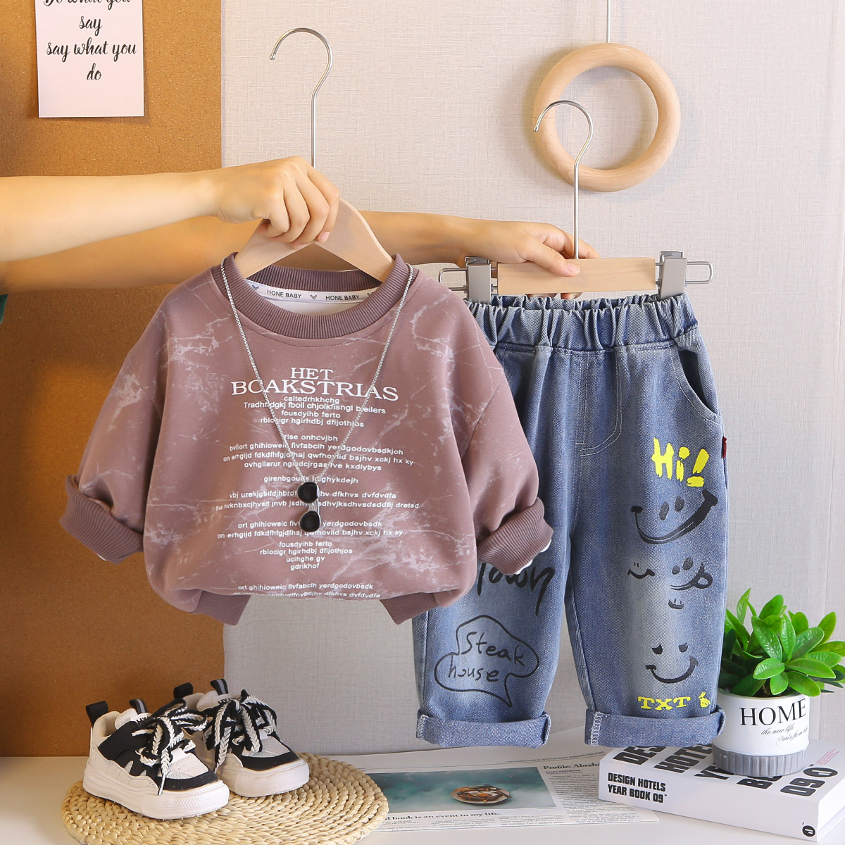 아기 봄 가을 의류 세트, 남아용 세련된 자수 가방 자켓, 아동용 가을 신상 캐주얼 스포츠 3종 세트스토어 가기