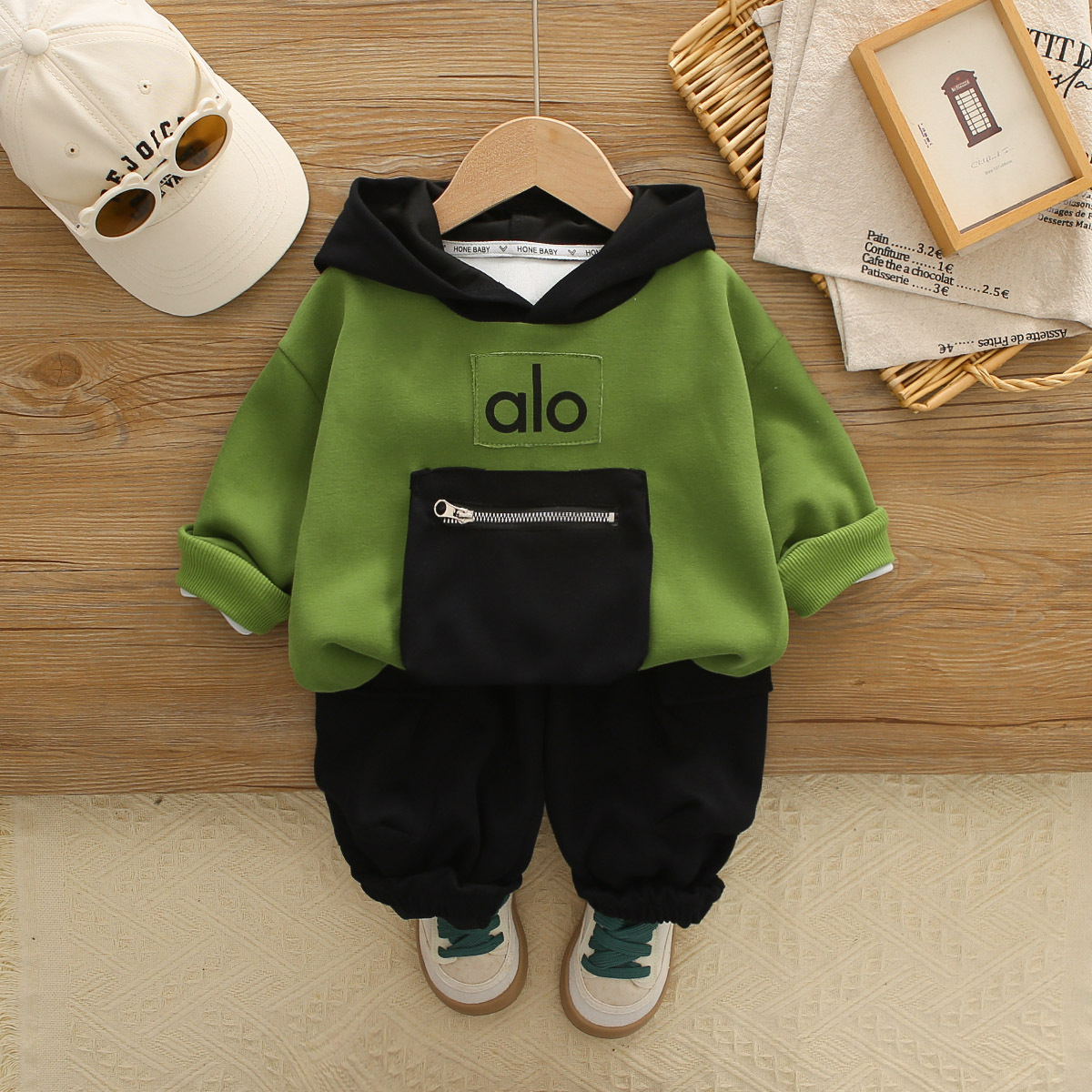• TXT-빅 포켓 후드 긴팔 슈트 그린