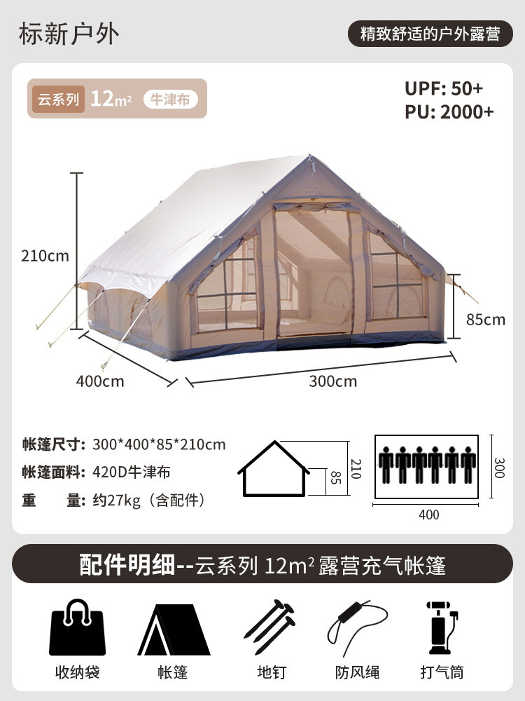 야외 캠핑 및 밤새도록 사용할 수 있는 국경 간 풍선 텐트, 장비 전체 세트, 하우스형 텐트, 두꺼운 자외선 차단 및 방수 텐트스토어 가기