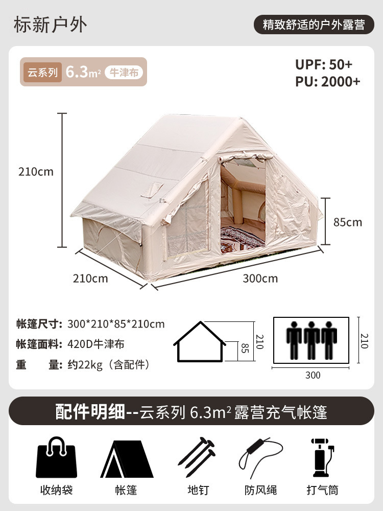 야외 캠핑 및 밤새도록 사용할 수 있는 국경 간 풍선 텐트, 장비 전체 세트, 하우스형 텐트, 두꺼운 자외선 차단 및 방수 텐트