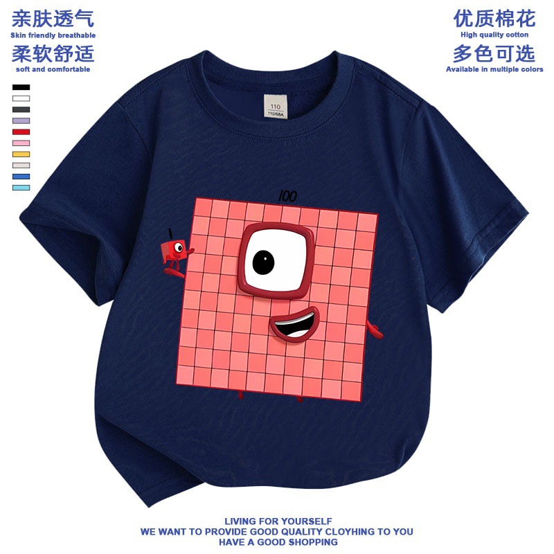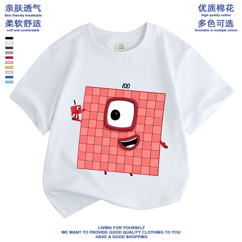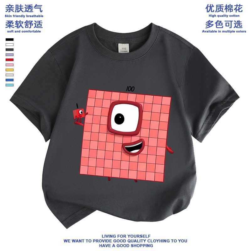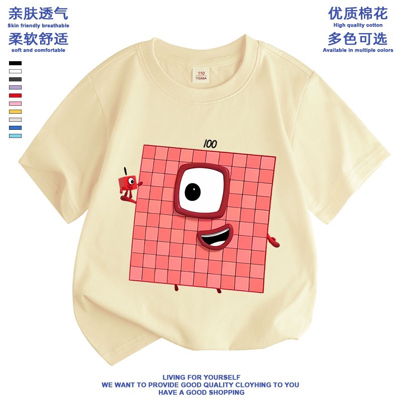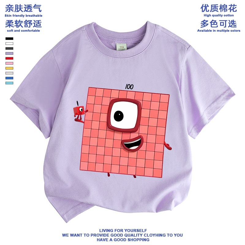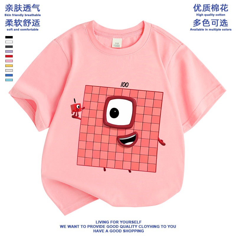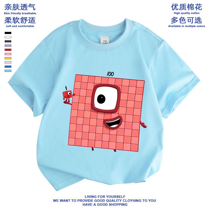 Numberblocks 디지털 빌딩 블록 공동 브랜드 반팔 티셔츠 소년 소녀 애니메이션 주변 의류 아동 반팔 여름