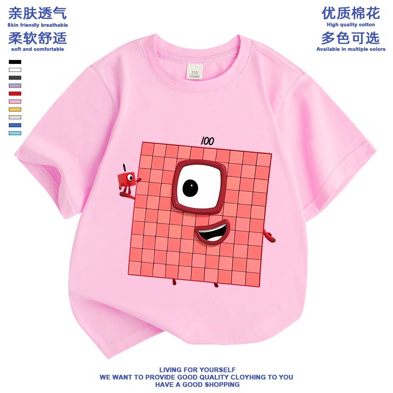 Numberblocks 디지털 빌딩 블록 공동 브랜드 반팔 티셔츠 소년 소녀 애니메이션 주변 의류 아동 반팔 여름스토어 가기