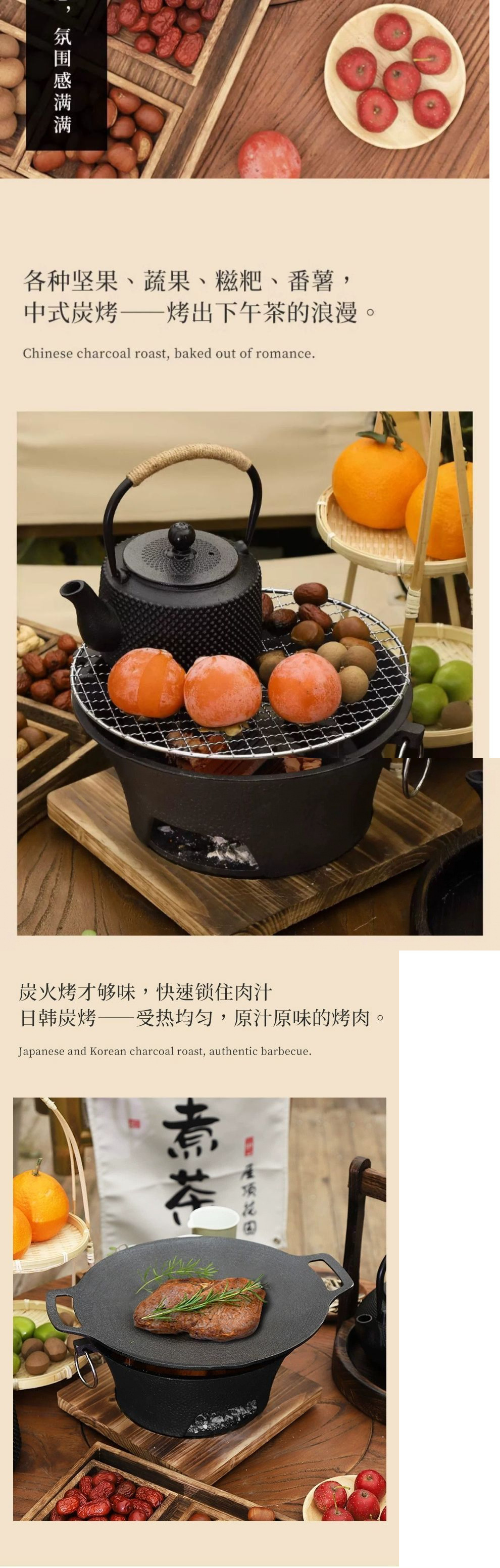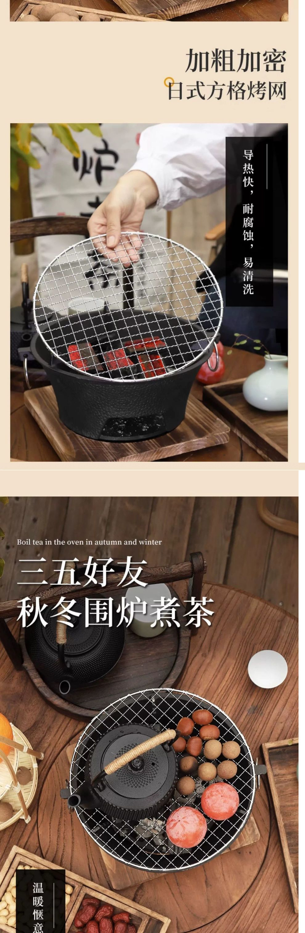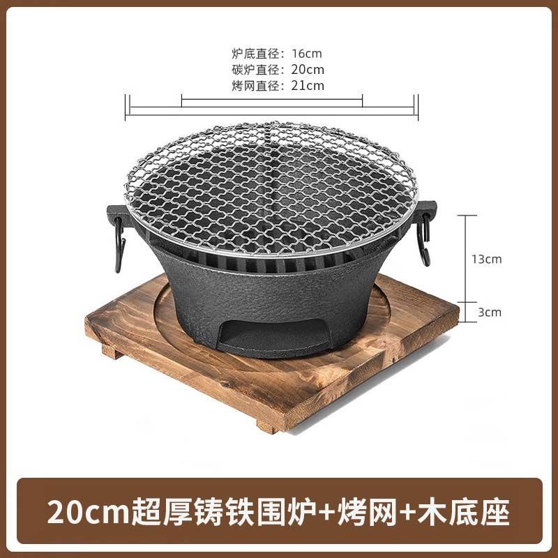 • 숯불 난로 + 그릴 그리드 + 화상 방지 나무 매트