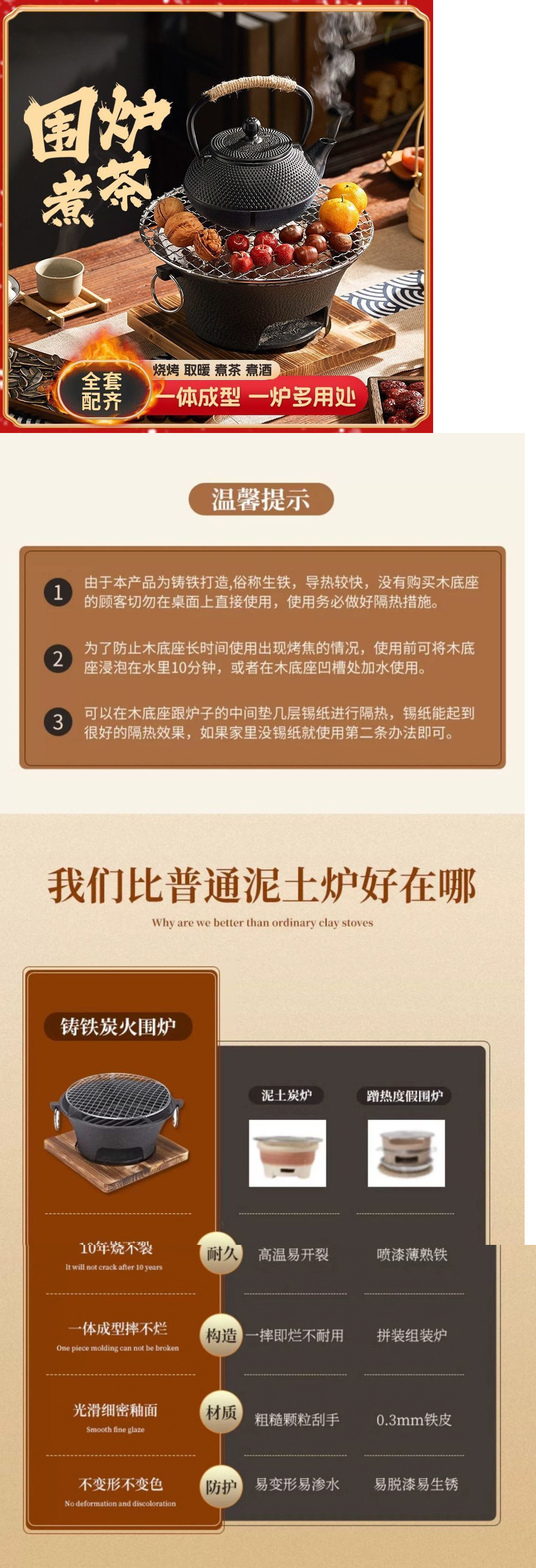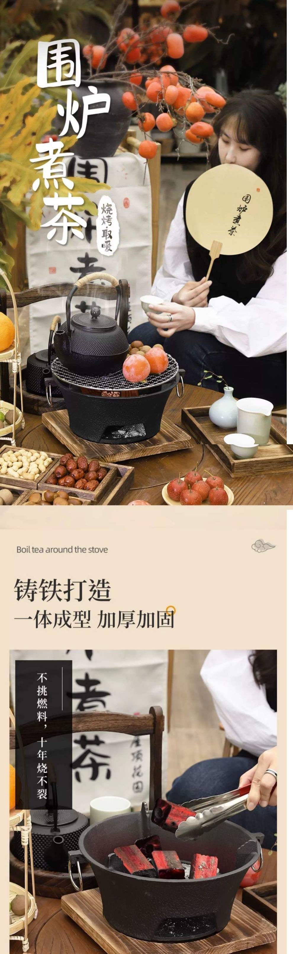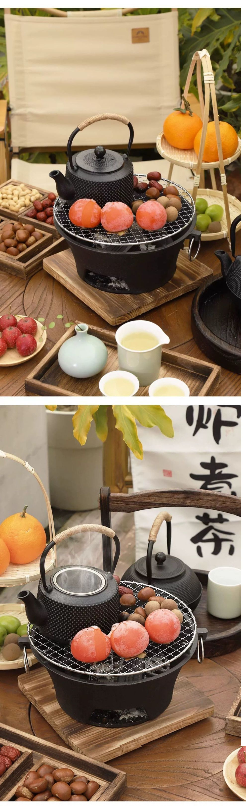 차를 끓일 수 있는 주철 난로, 가정용 실내 인터넷 연예인 숯 난로, 화로 전체 세트, 소형 난로, 야외 난방 및 바베큐