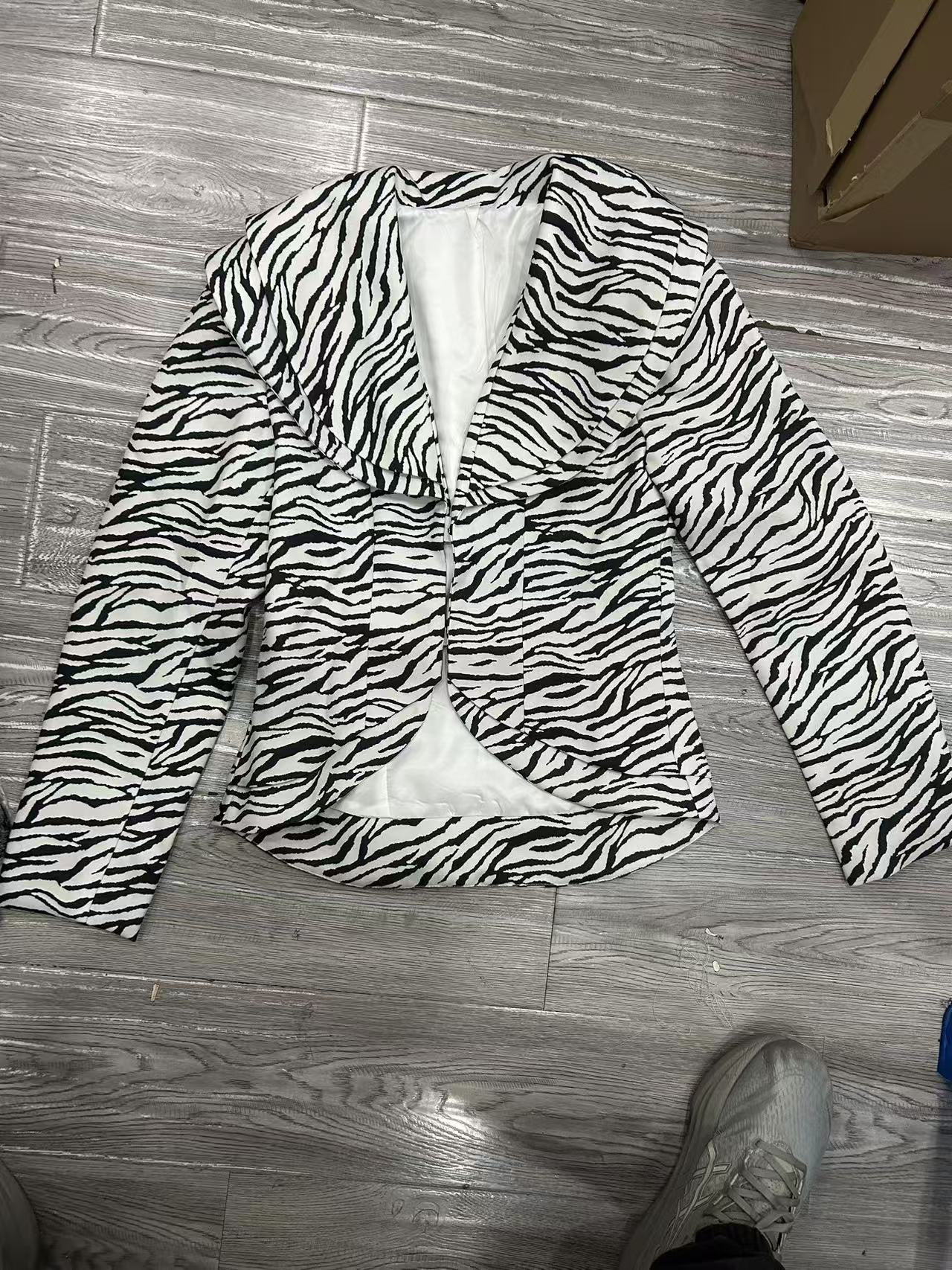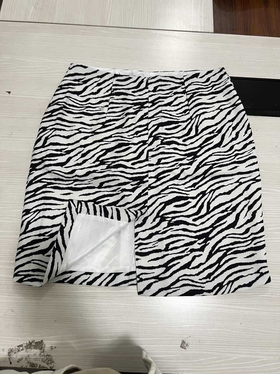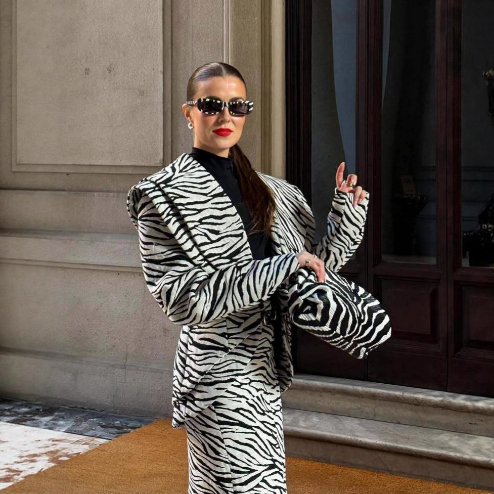 국경을 넘는 알리익스프레스 2025 초가을 신상품 패셔너블하고 고급스러운 V넥 얼룩말 무늬 프린트 재킷과 스커트 세트