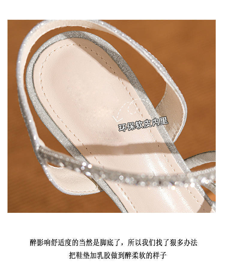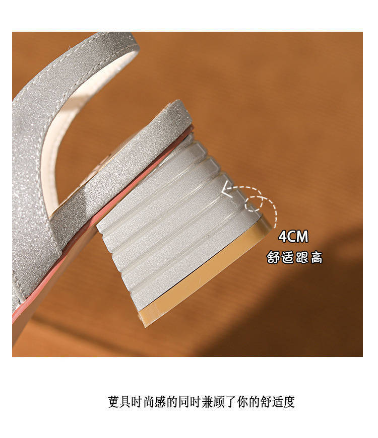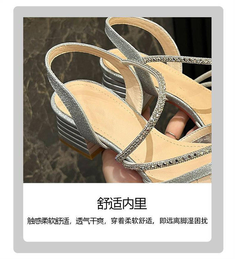 여성을위한 메쉬 두꺼운 굽 라인 석 하이힐 프렌치 로우 힐 포인티드 토 신발 2025 여름 신작 Baotou 원 스트랩 샌들스토어 가기