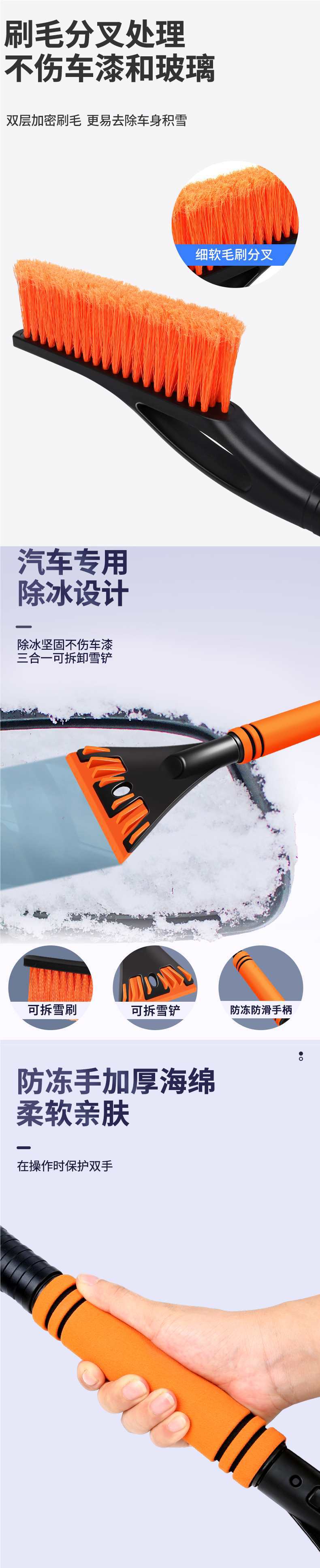 • 오렌지색 2팩 - 면 손잡이와 긴 손잡이 [해동 및 제설]