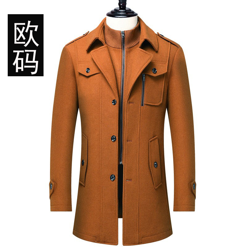 크로스보더 남성용 중간 길이 모직 코트 두꺼운 코트 남성 유럽 사이즈스토어 가기