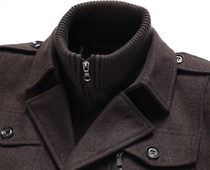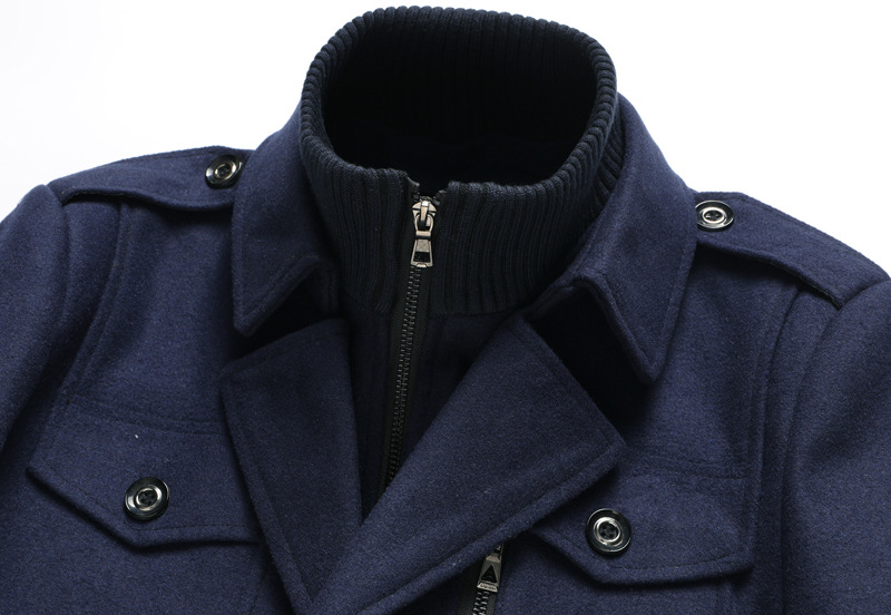 크로스보더 남성용 중간 길이 모직 코트 두꺼운 코트 남성 유럽 사이즈