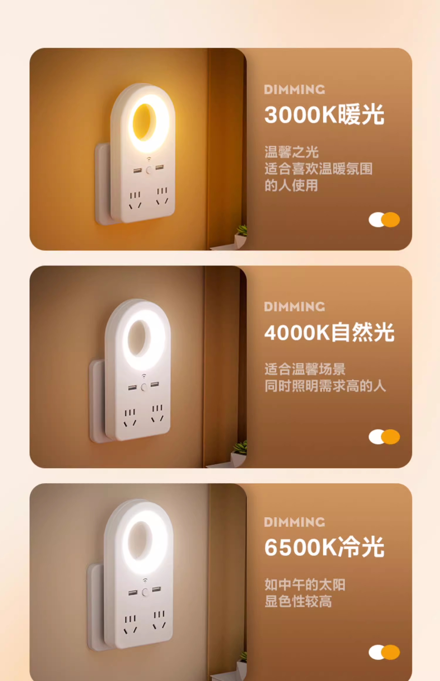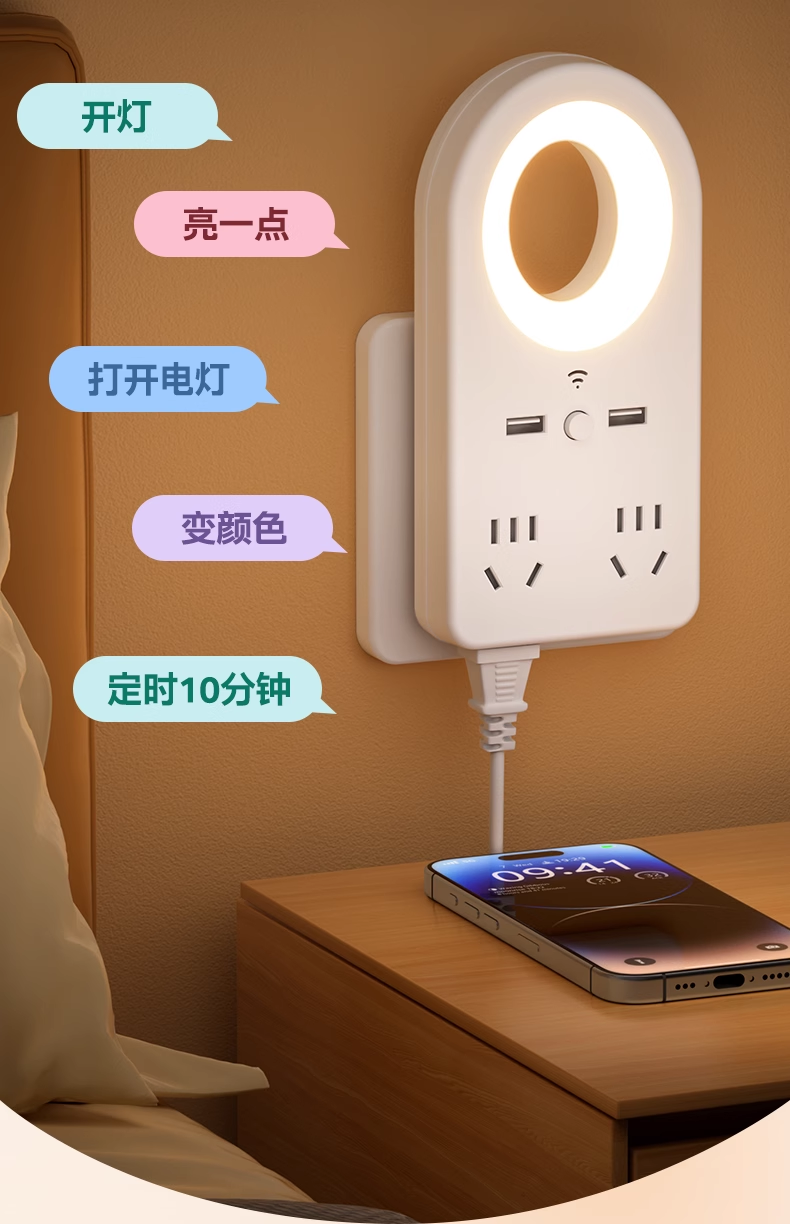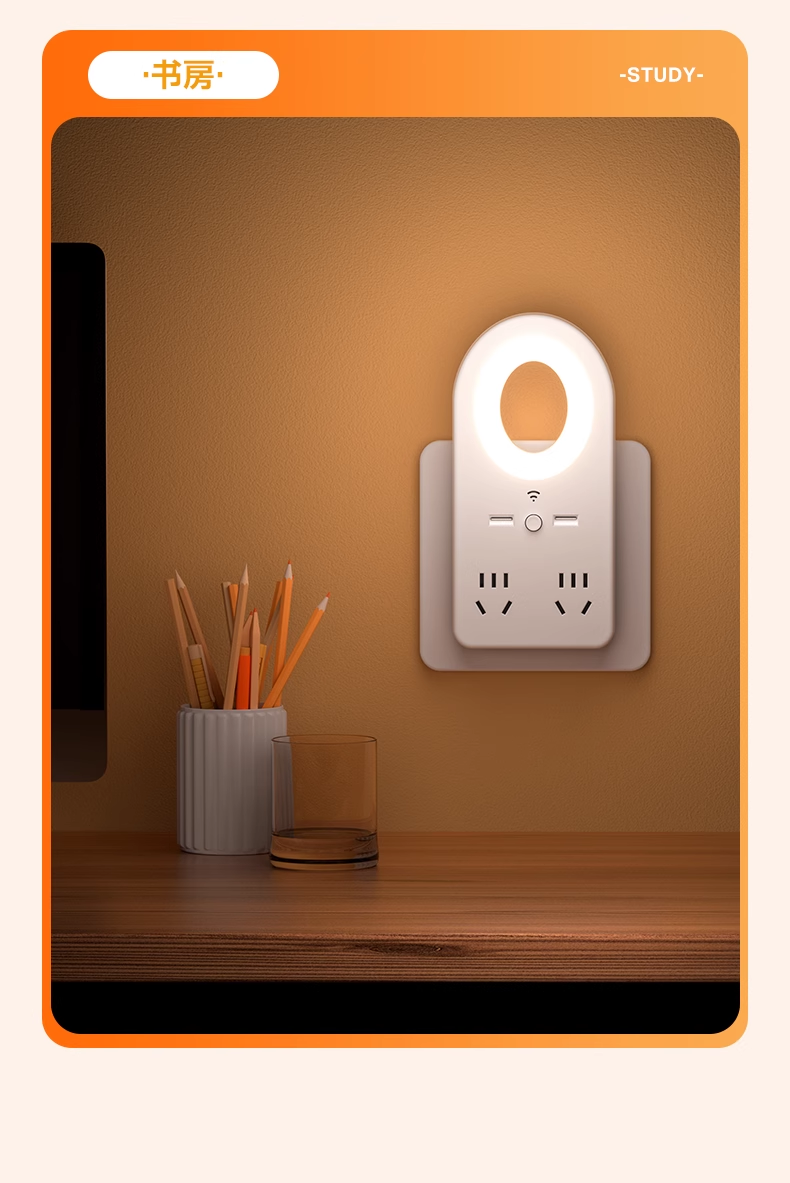 • [음성 + 수동 + USB + 예약 조명 끄기] [4 소켓] 야간 조명