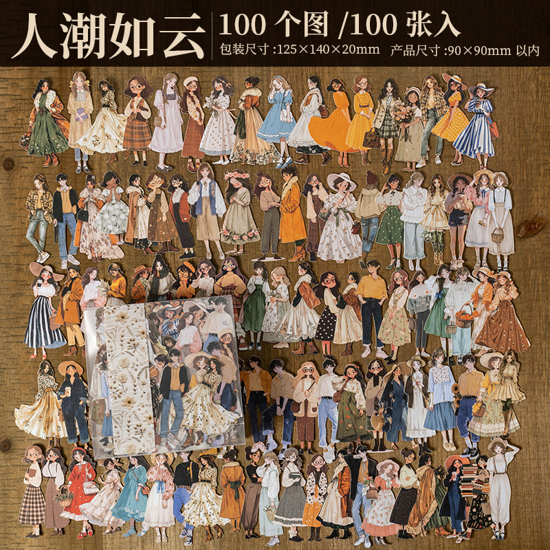 토마토 소스 소녀 스티커, 인파가 구름처럼 시리즈, 캐릭터 테마, 흰색 테두리 없음, 대용량 하드 카드 핸드북 1 스타일