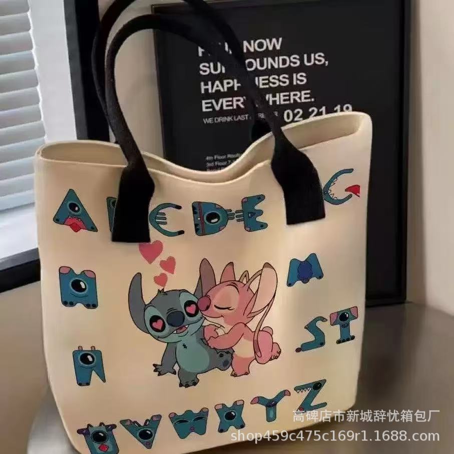 무료 라벨링 및 배송 스티치 프린트 만화 다용도 사각형 입체 캔버스 가방 주변 휴대용스토어 가기