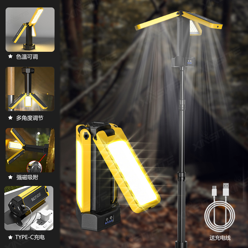 새로운 강한 빛 LED 캠핑 램프, 접이식, 오래 지속되는 배터리 수명, 휴대용 플로어 램프, 야외 스톨 캠핑 투광 조명
