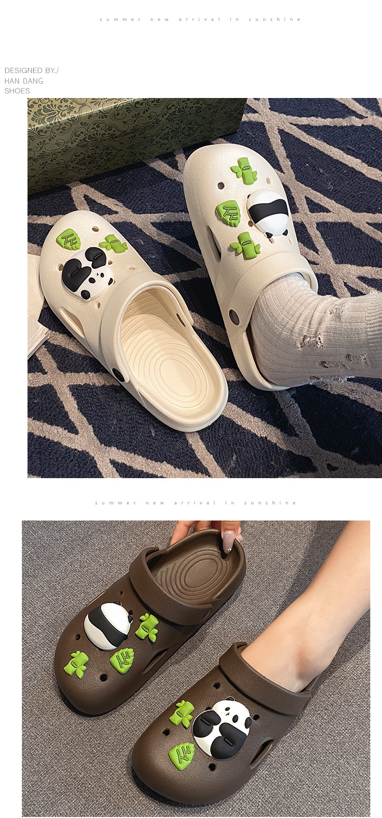 바오터우 홈 슬리퍼, 미끄럼 방지 욕실 팬더 대나무 나막신, 여성용 여름 부드러운 밑창 경량 슬리퍼, 남성용