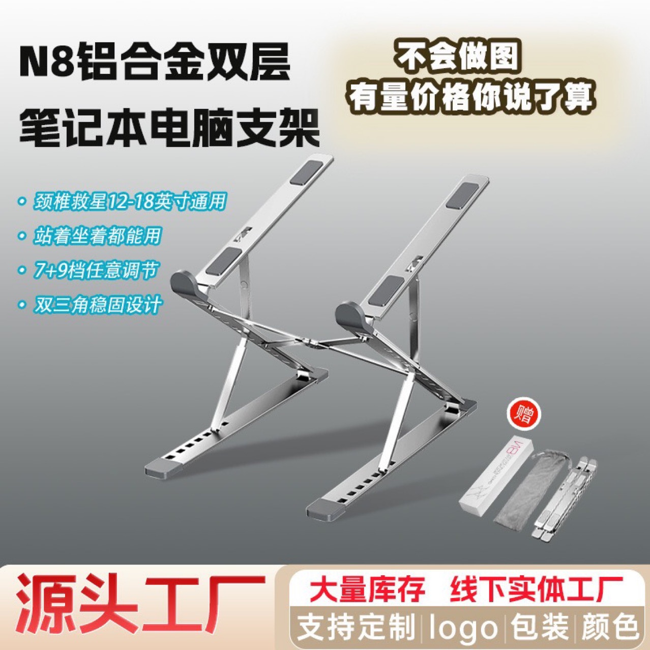 N71 노트북 스탠드 전체 알루미늄 합금 스탠드 싱글 포크 접이식 전체 금속 실리콘 냉각 지원 스탠드스토어 가기