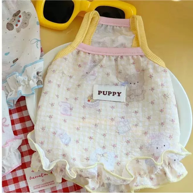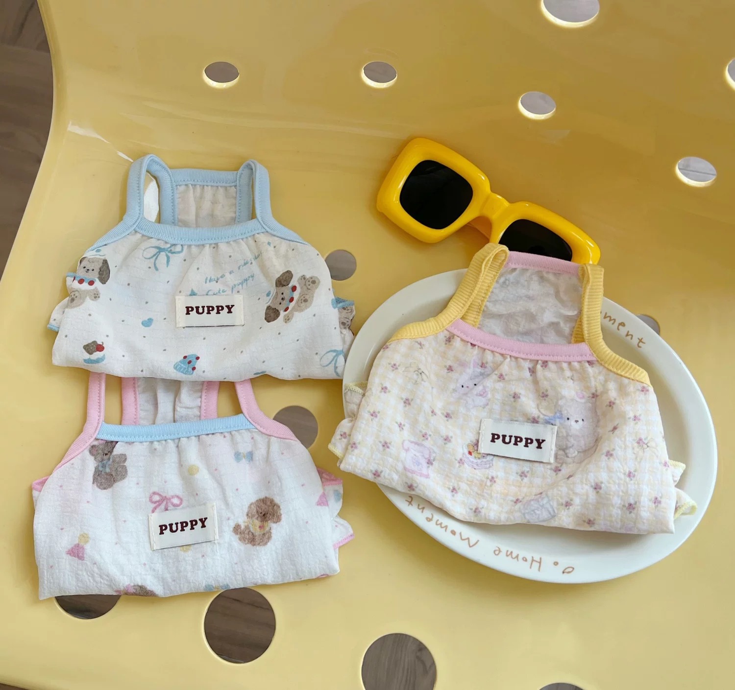 애완 동물 옷 여름 얇은 통기성 크림 컬 만화 캐미솔 고양이 작은 개 비숑 테디스토어 가기