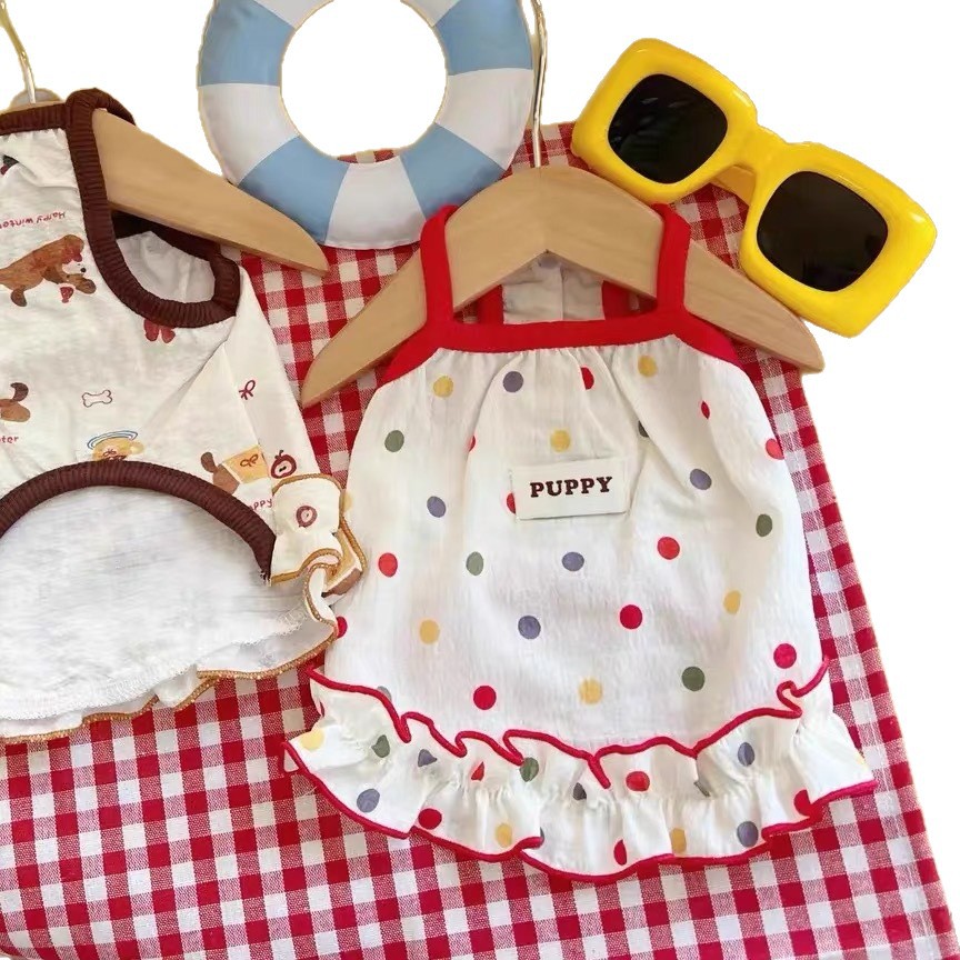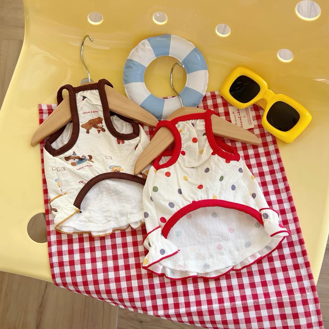 애완 동물 옷 여름 얇은 통기성 크림 컬 만화 캐미솔 고양이 작은 개 비숑 테디