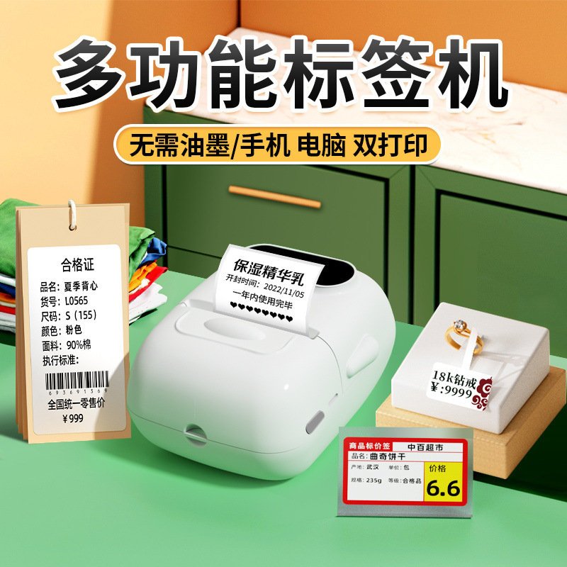 새로운 열 블루투스 휴대용 미니 라벨 프린터 의류 쥬얼리 슈퍼마켓 식품 자체 접착 가격 인쇄 기계스토어 가기