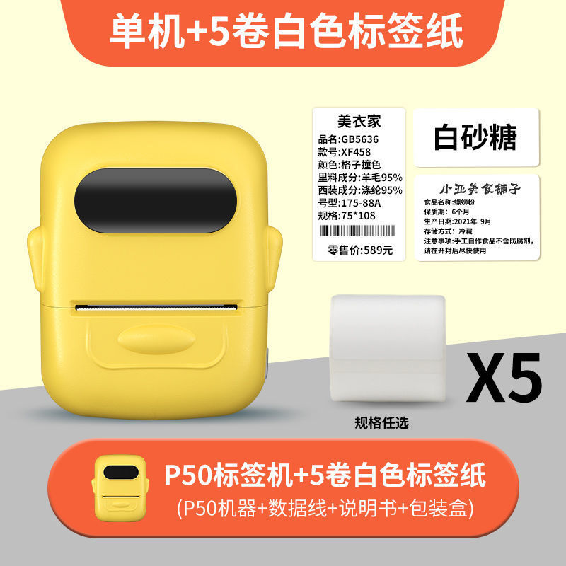 • 크림색 노란색 [12-50mm 인쇄 가능] - 독립형 기계 + 흰색 방수 라벨 5롤