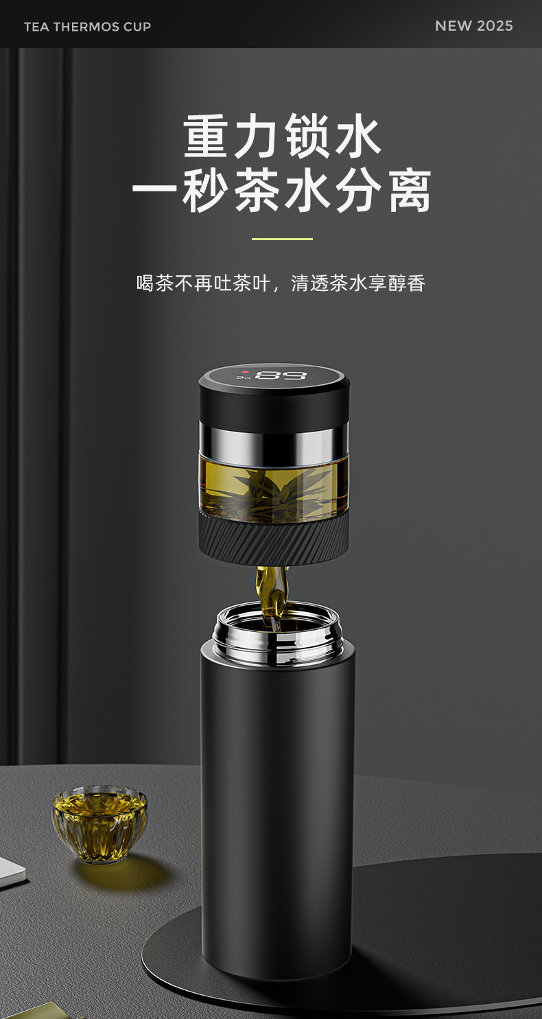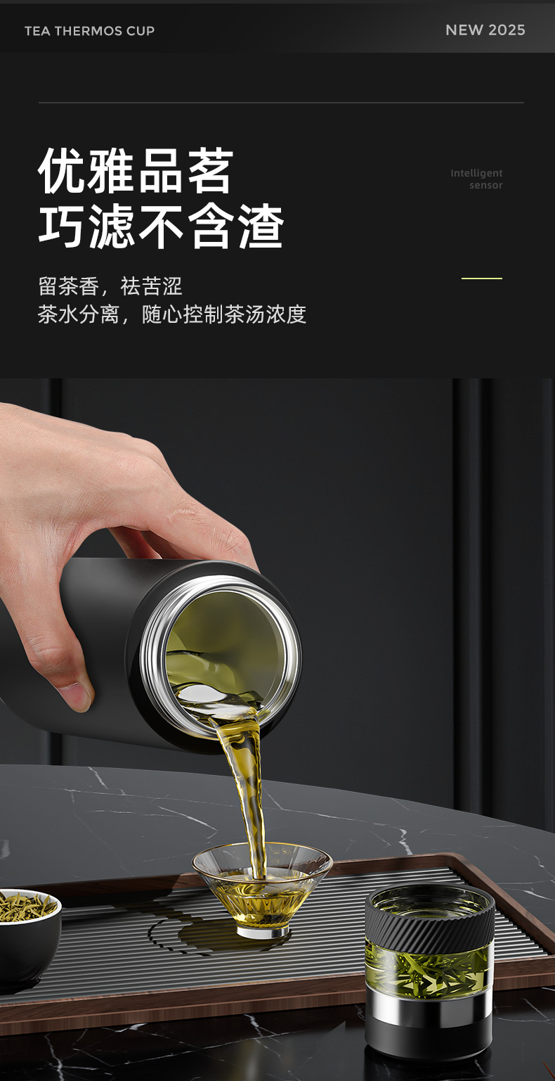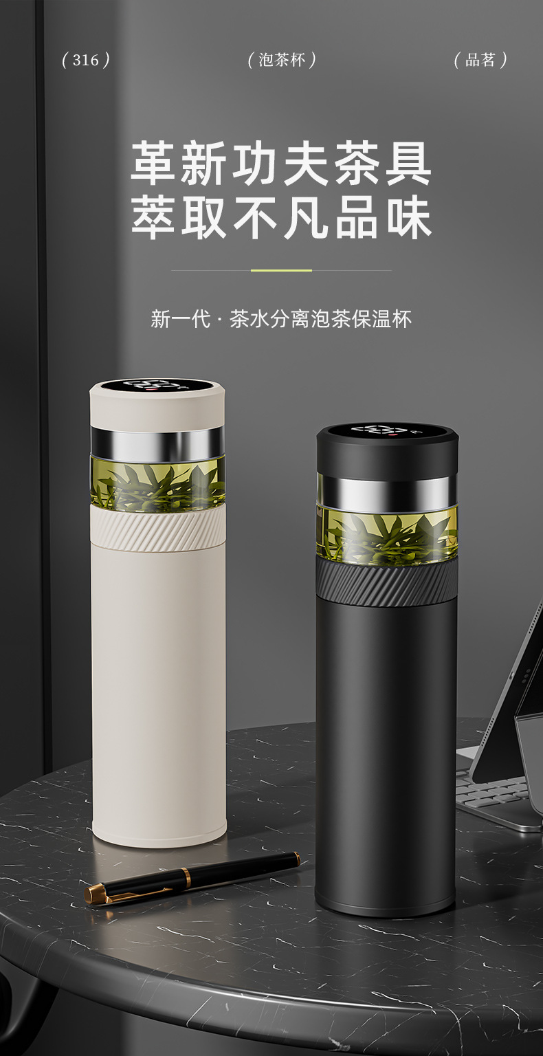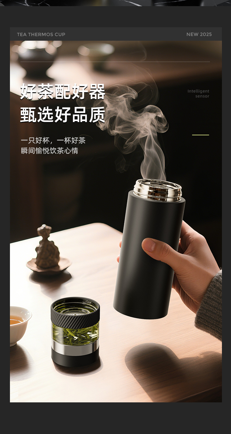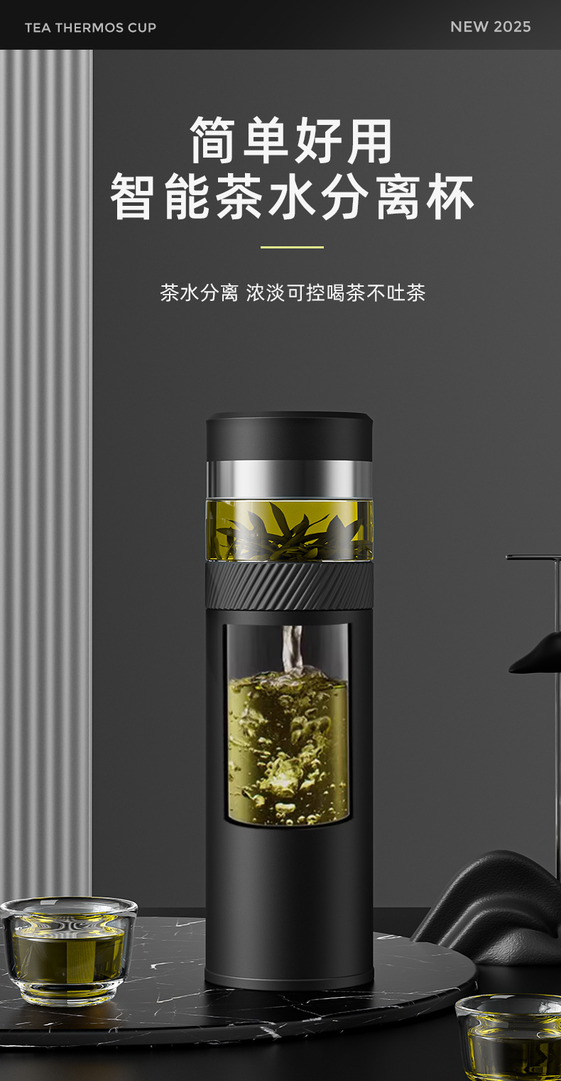 2025 새로운 스타일의 남성용 및 여성용 보온병 컵, 차와 물 분리 찻잔, 휴대용 선물 로고 각인 물컵