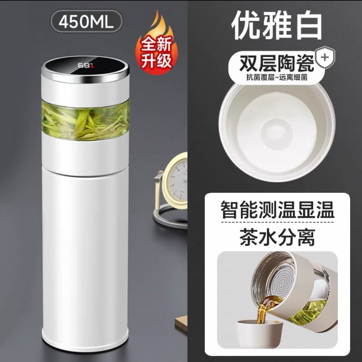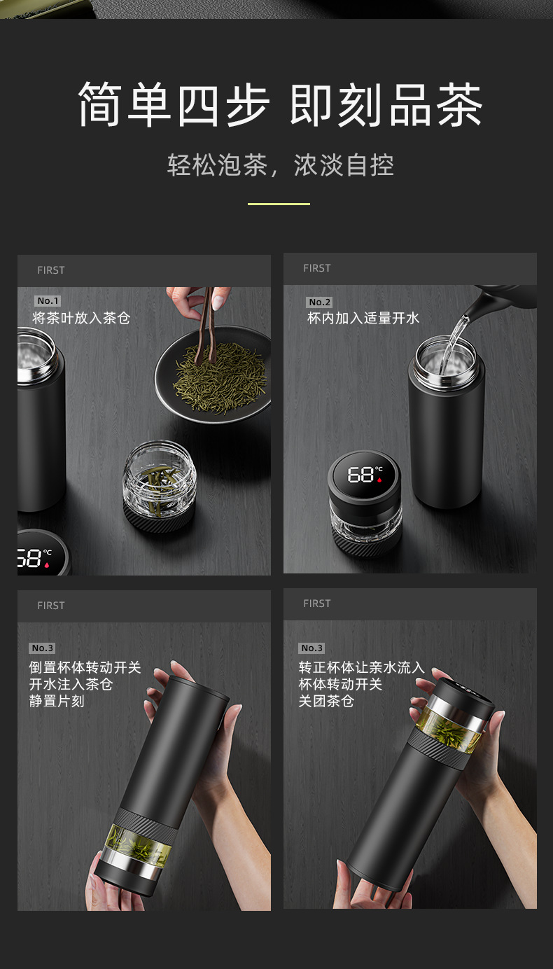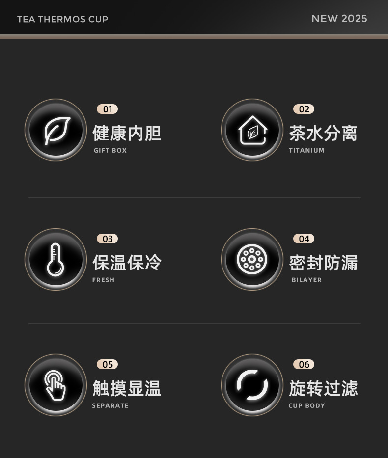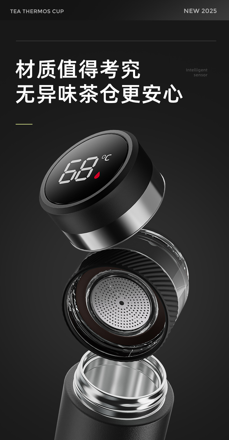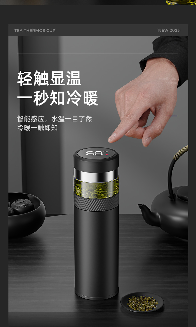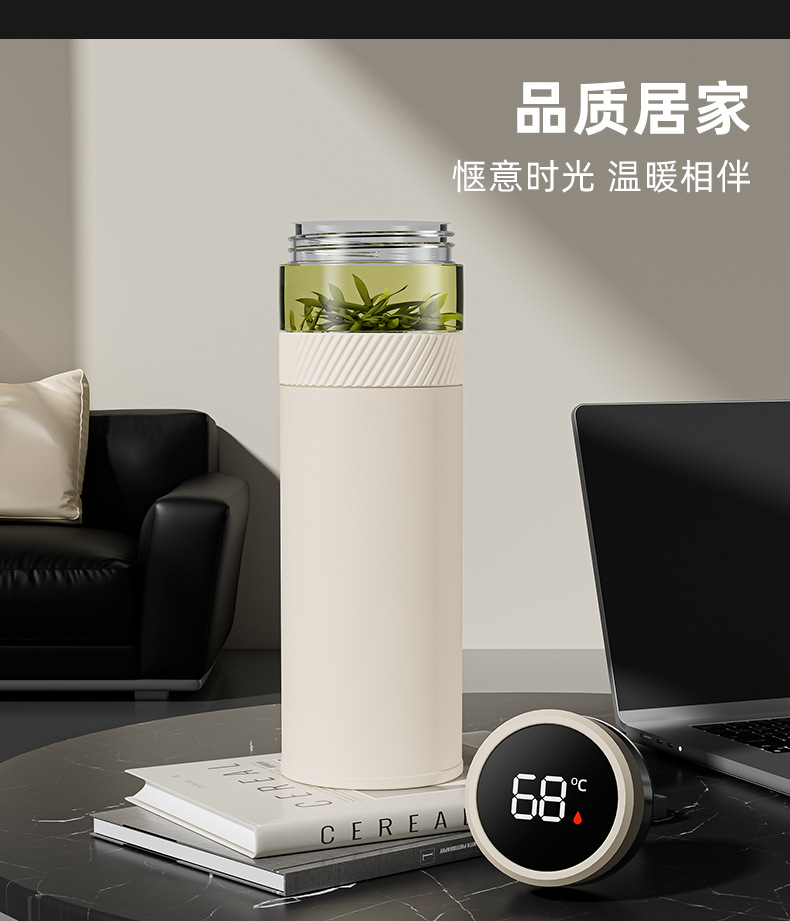 2025 새로운 스타일의 남성용 및 여성용 보온병 컵, 차와 물 분리 찻잔, 휴대용 선물 로고 각인 물컵