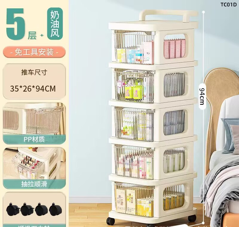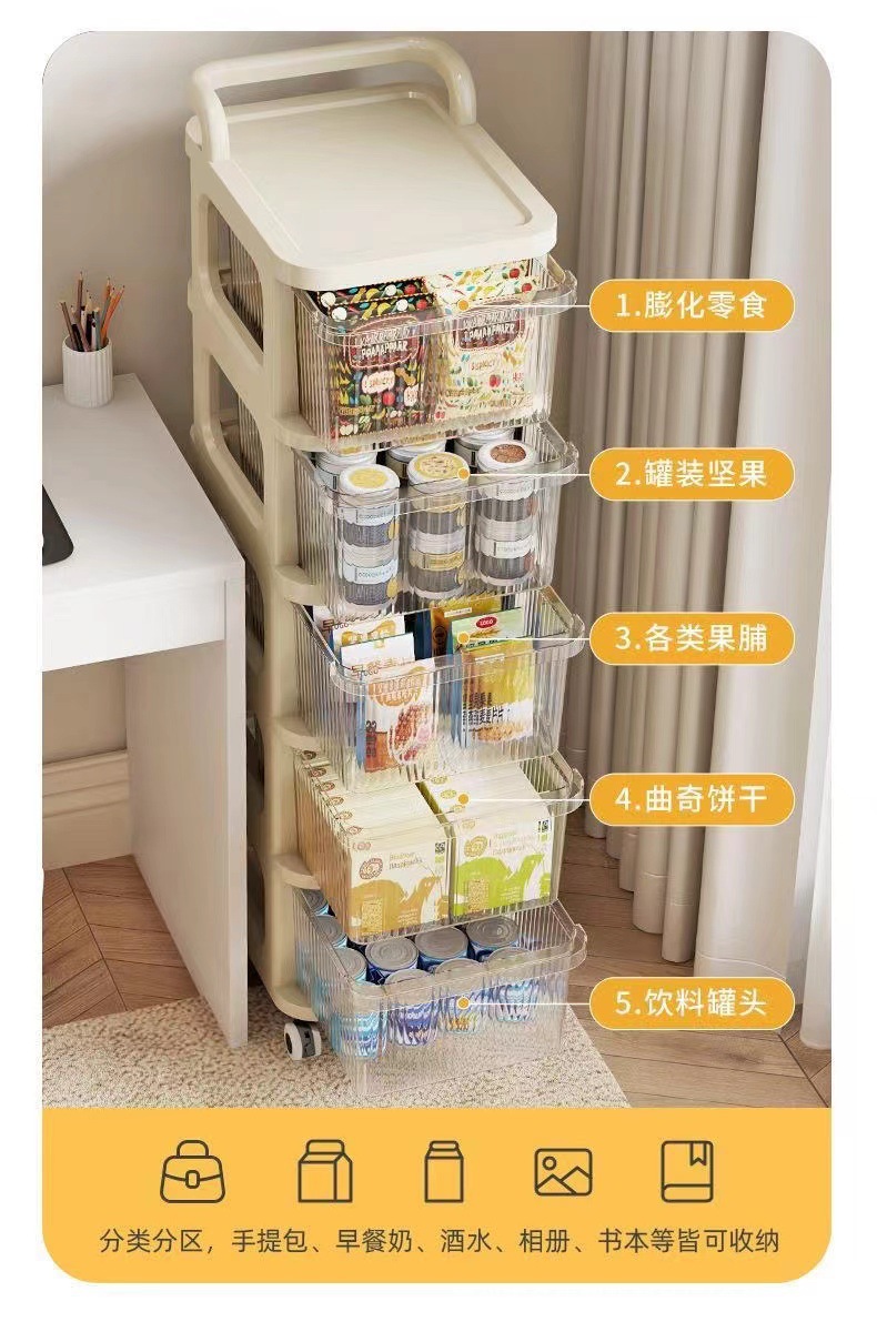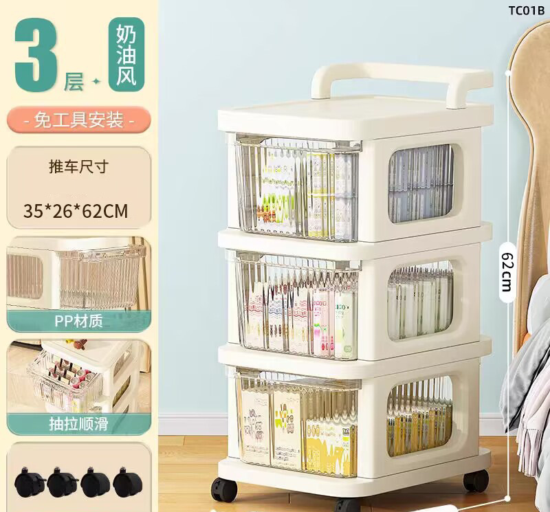 크림 스타일 트롤리 스낵 보관함 아기 용품 보관함 이동식 서랍 유형 아기 가정용 장난감스토어 가기