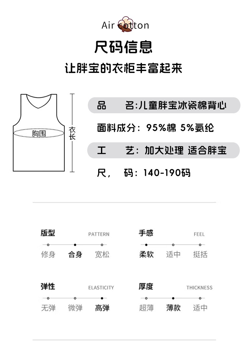뚱뚱한 어린이를 위한 여름 순면 조끼, 큰 어린이를 위한 순면 조끼, 남아용 루즈 버전, 민소매 플러스 사이즈, 이너웨어