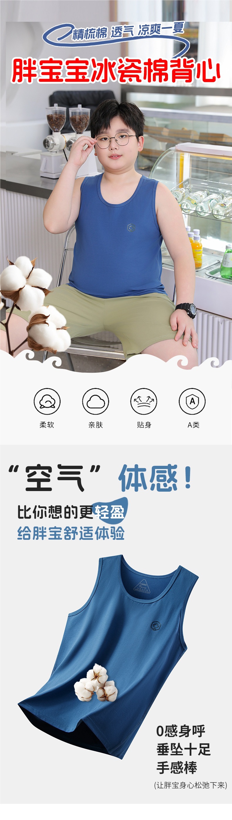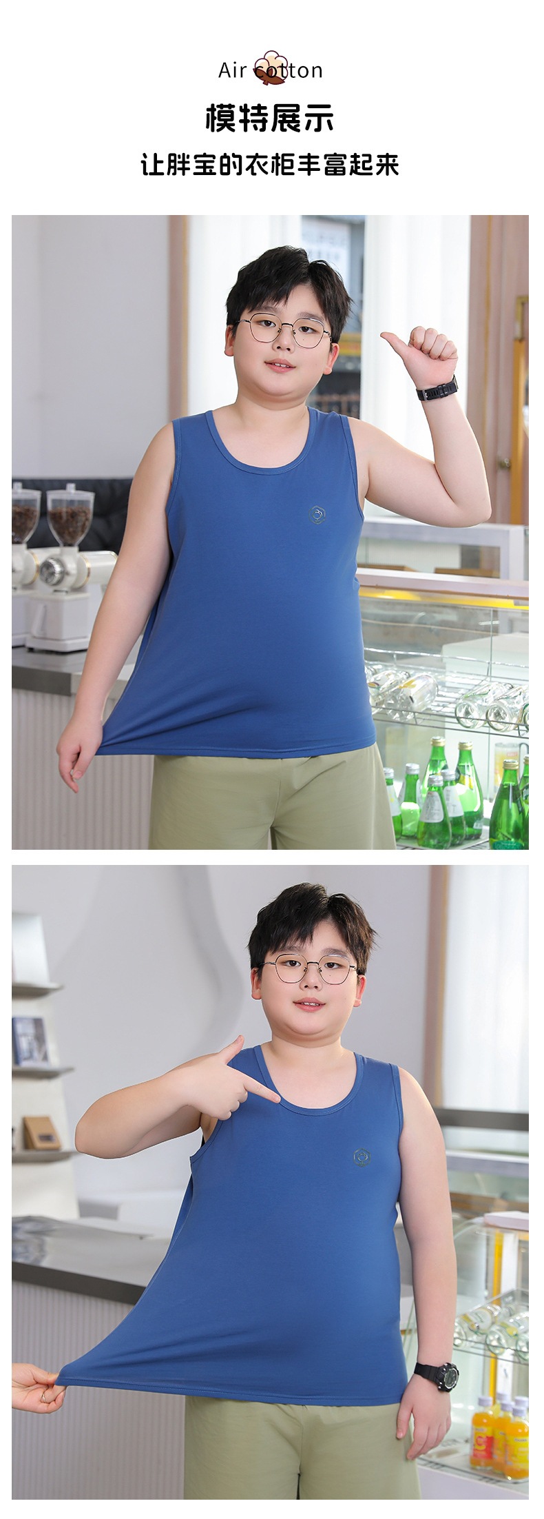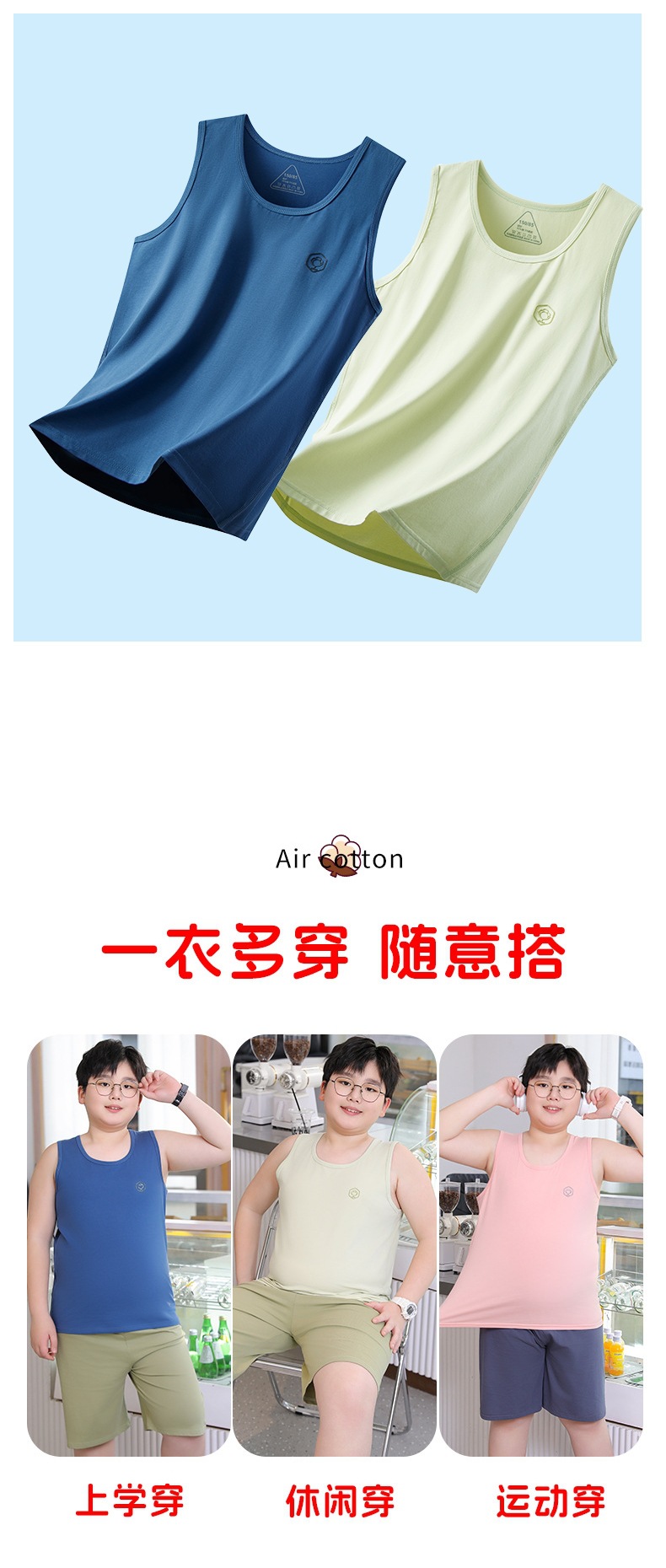 뚱뚱한 어린이를 위한 여름 순면 조끼, 큰 어린이를 위한 순면 조끼, 남아용 루즈 버전, 민소매 플러스 사이즈, 이너웨어스토어 가기