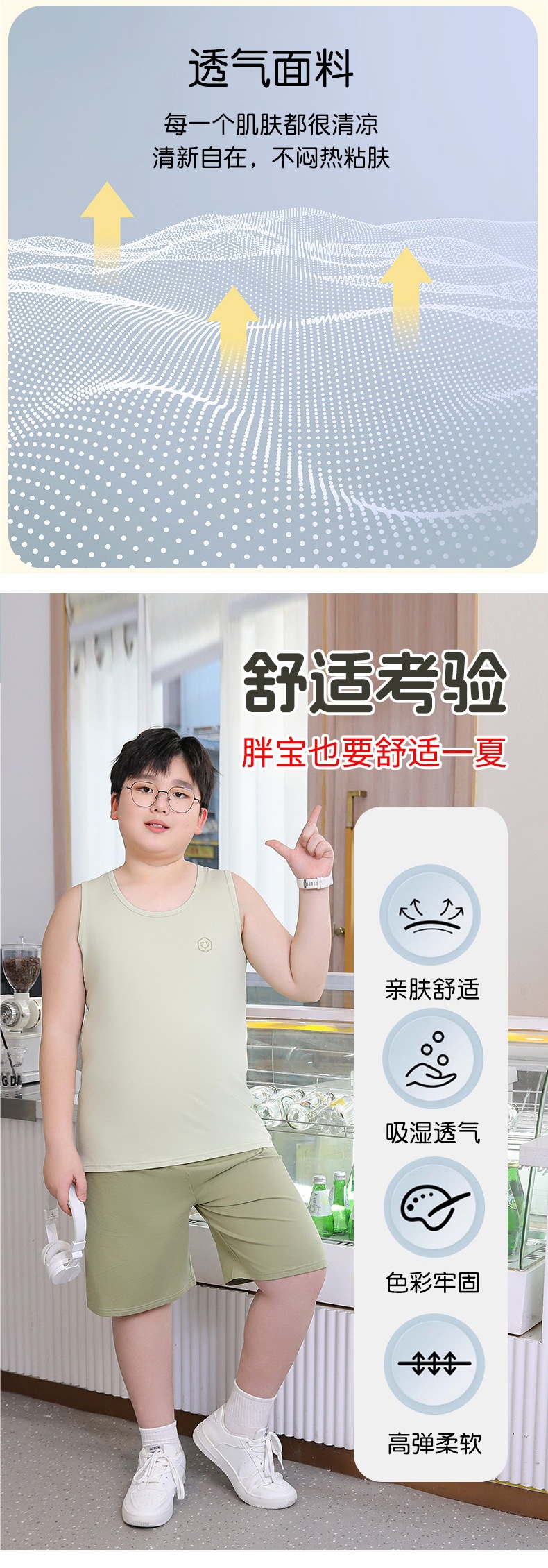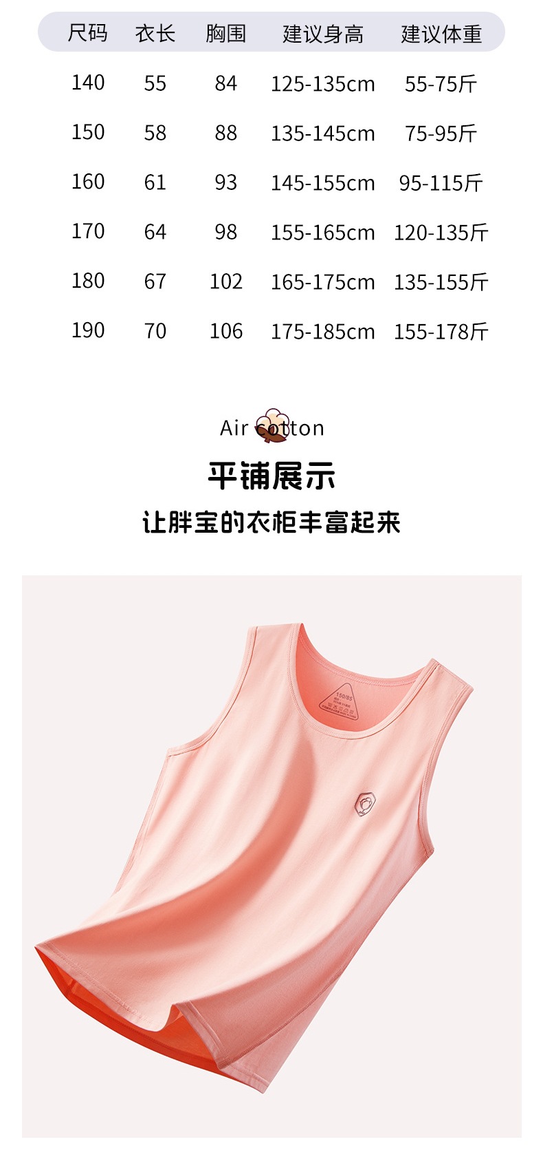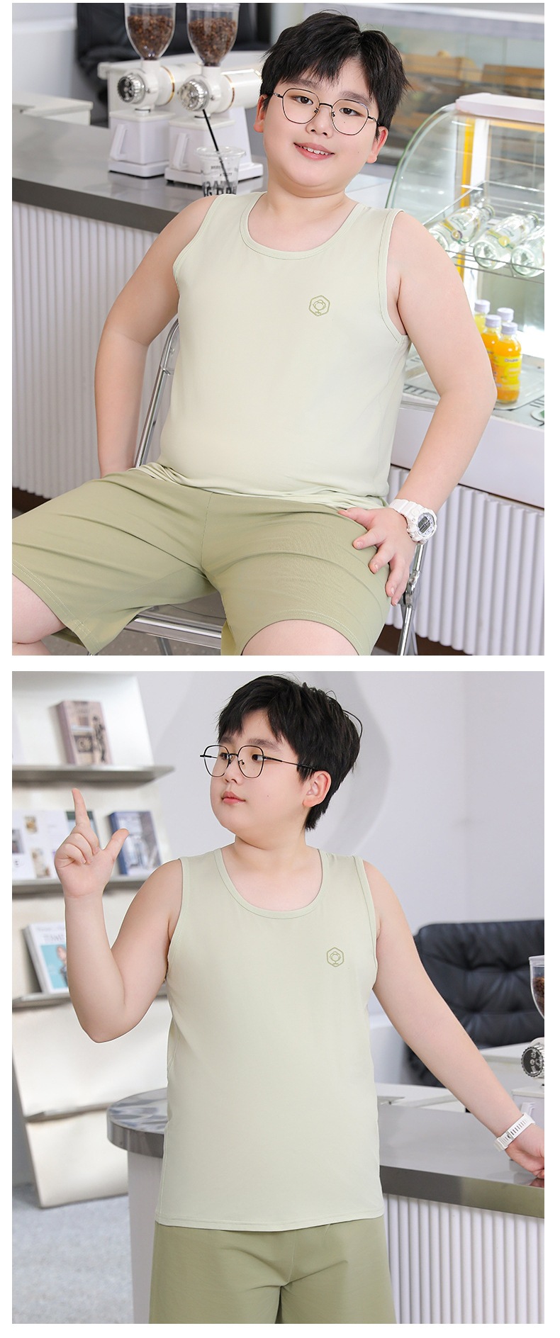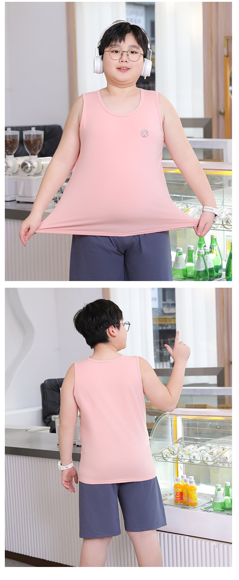 뚱뚱한 어린이를 위한 여름 순면 조끼, 큰 어린이를 위한 순면 조끼, 남아용 루즈 버전, 민소매 플러스 사이즈, 이너웨어스토어 가기