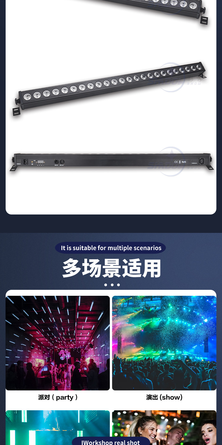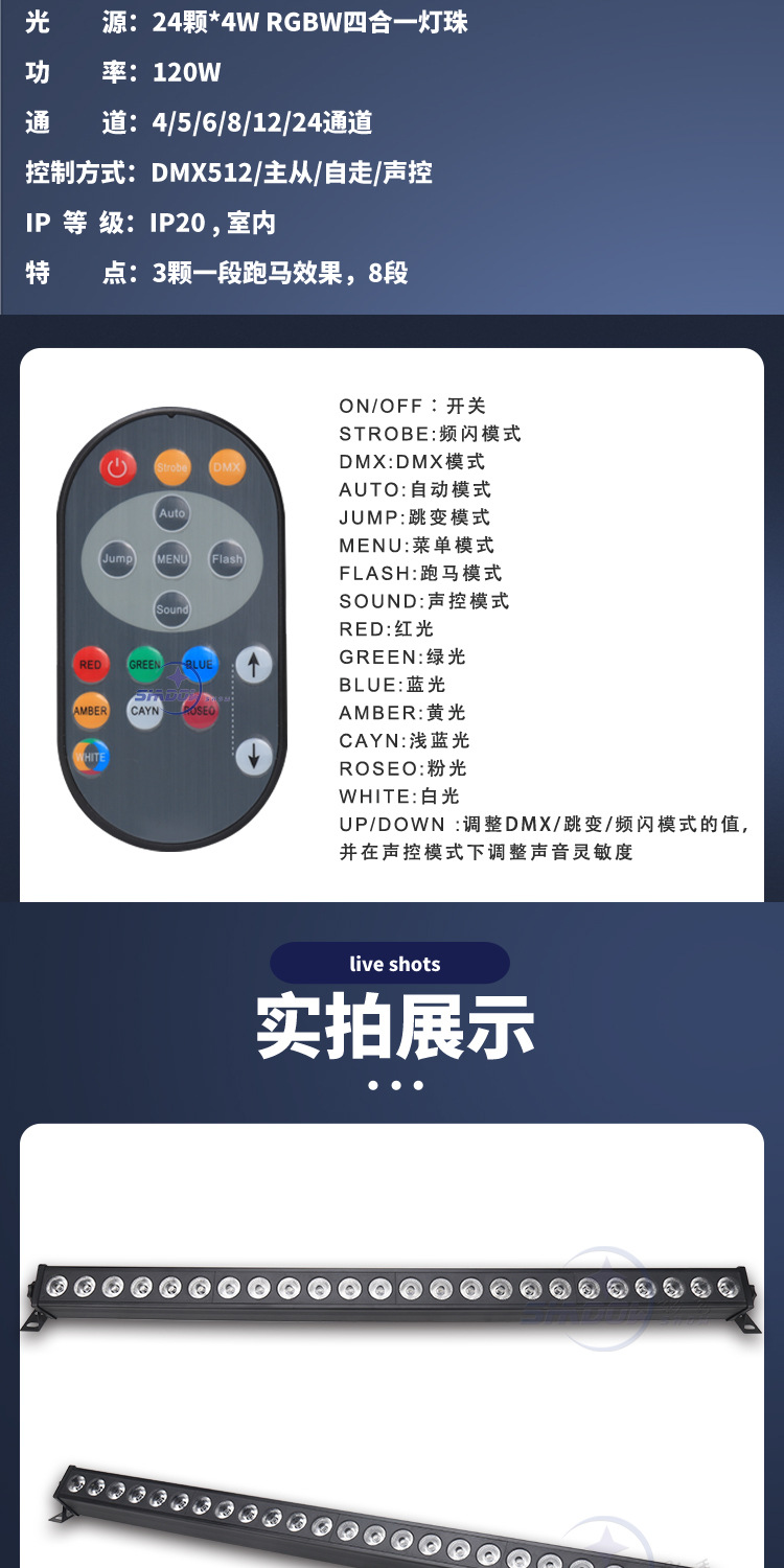 24개의 마카 벽 세척 조명, 4-in-1 염색 조명, 바 무대 매트릭스 조명, 퍼포먼스 라인 조명, 풀 컬러 배경 조명