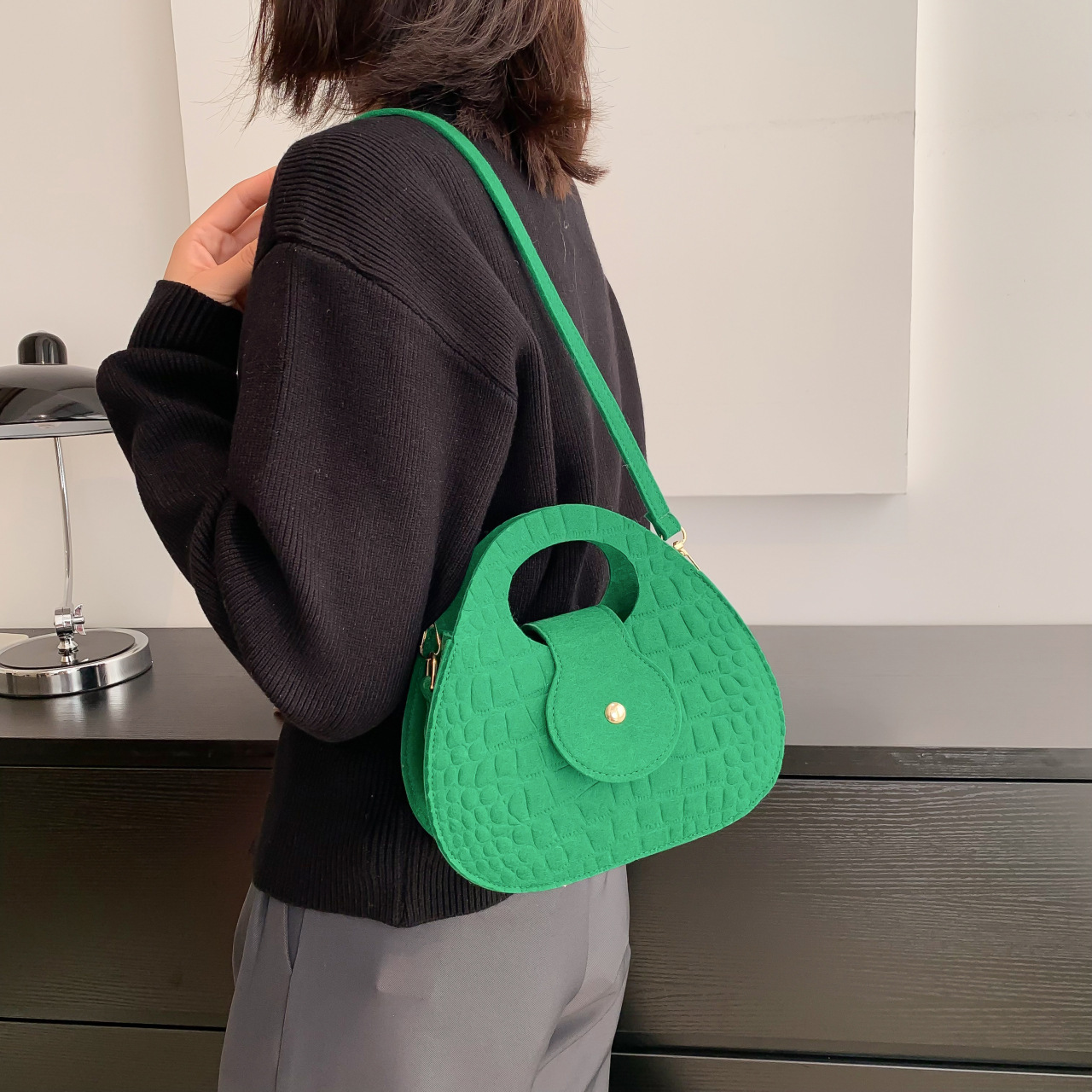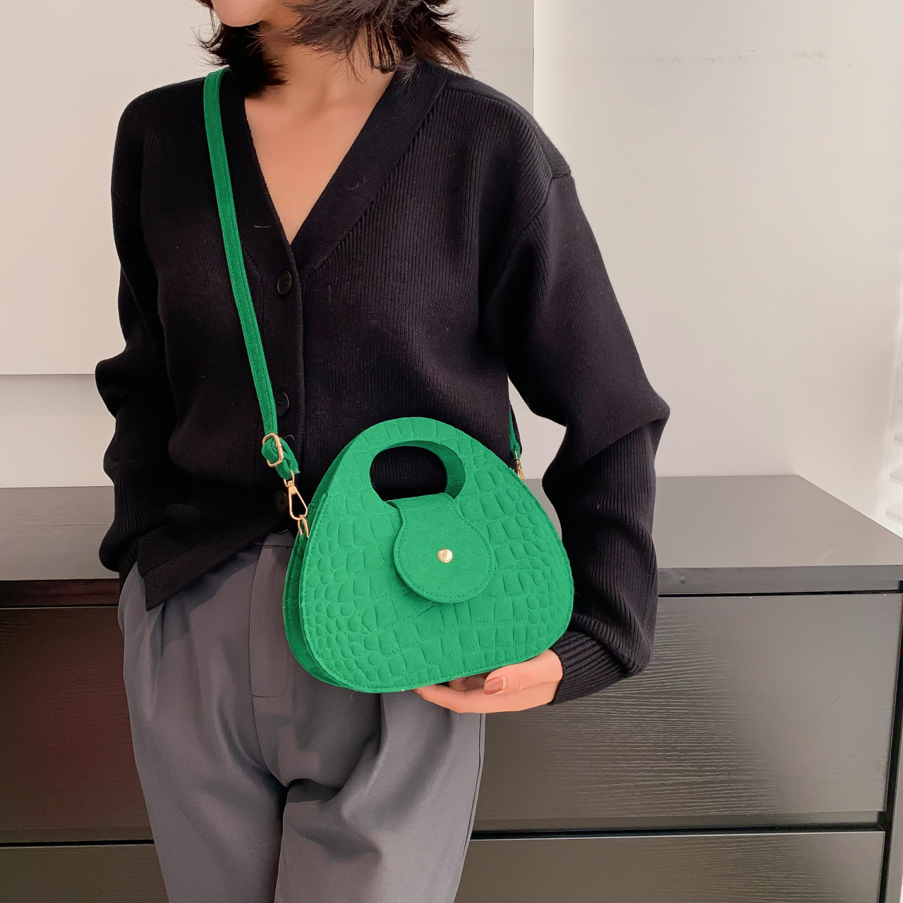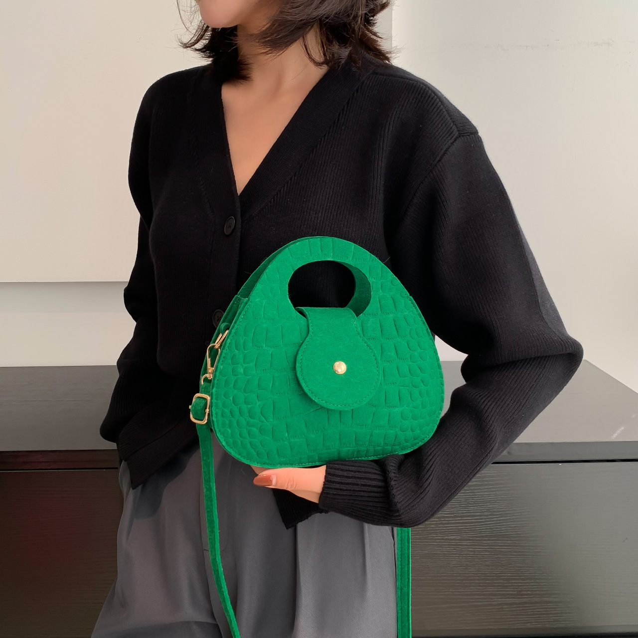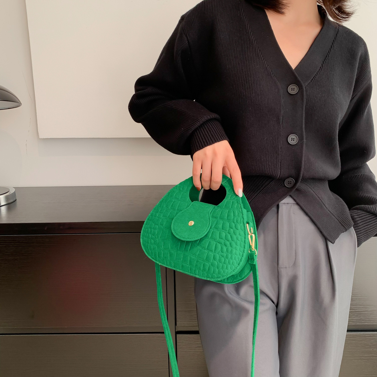한국 스타일 트렌디한 단색 기질 여성용 가방 새로운 스타일의 싱글 숄더 크로스 바디 작은 사각형 가방 겨드랑이 펠트 가방 캐주얼 숄더 핸드백