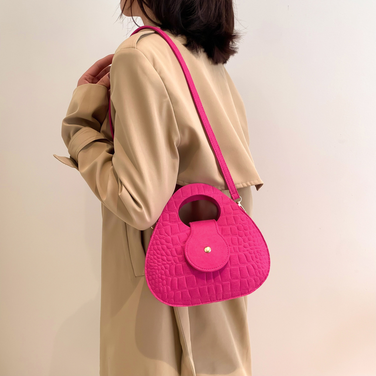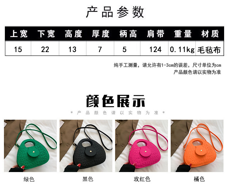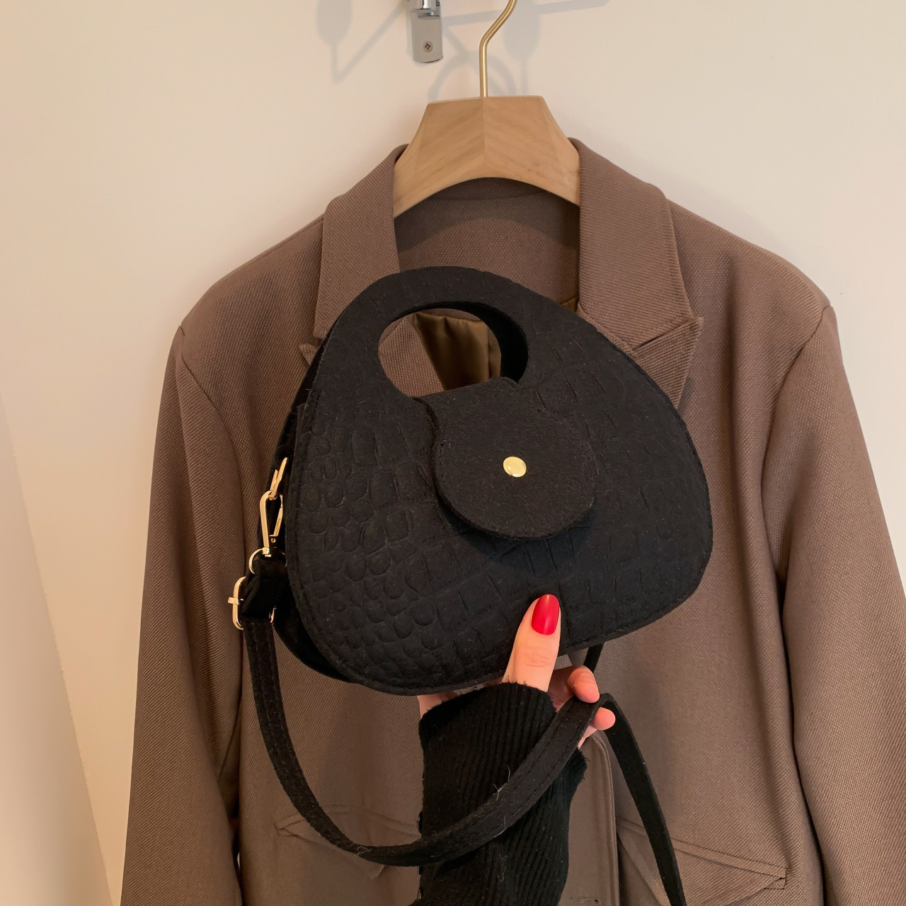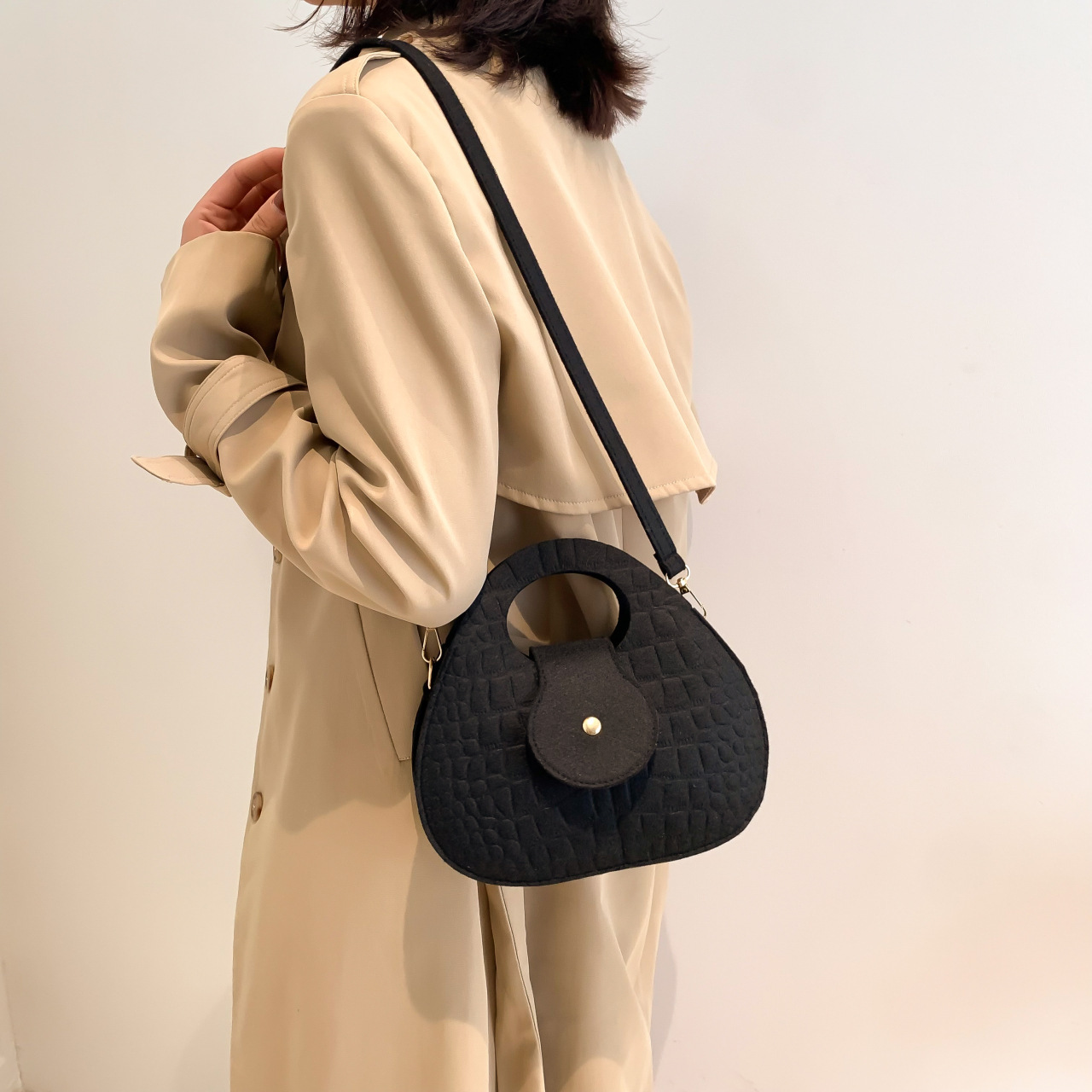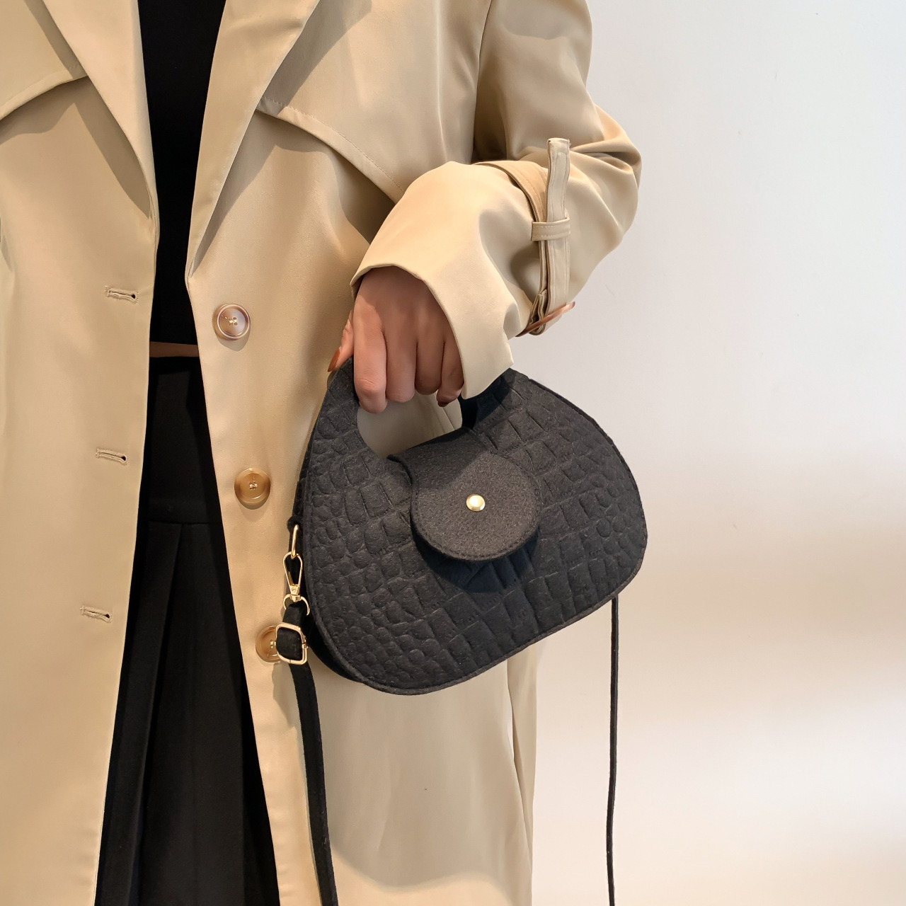 한국 스타일 트렌디한 단색 기질 여성용 가방 새로운 스타일의 싱글 숄더 크로스 바디 작은 사각형 가방 겨드랑이 펠트 가방 캐주얼 숄더 핸드백