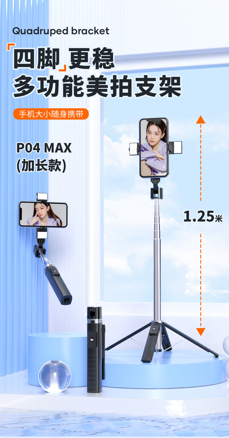 새로운 P04 블루투스 셀카 블라인더, 흔들림 방지, 접이식, 다기능 4피트 카메라, 라이브 방송 휴대폰 셀카봉스토어 가기
